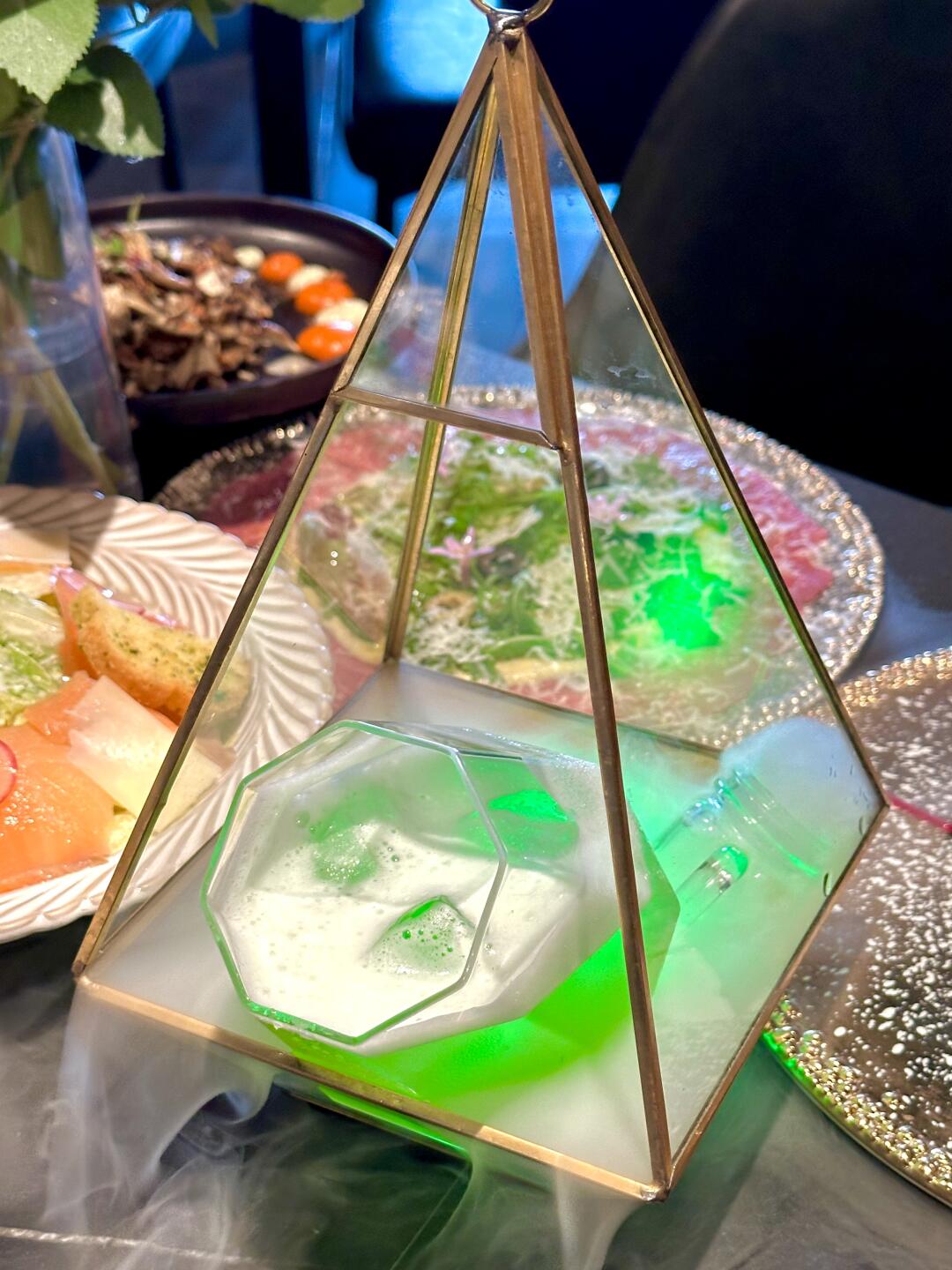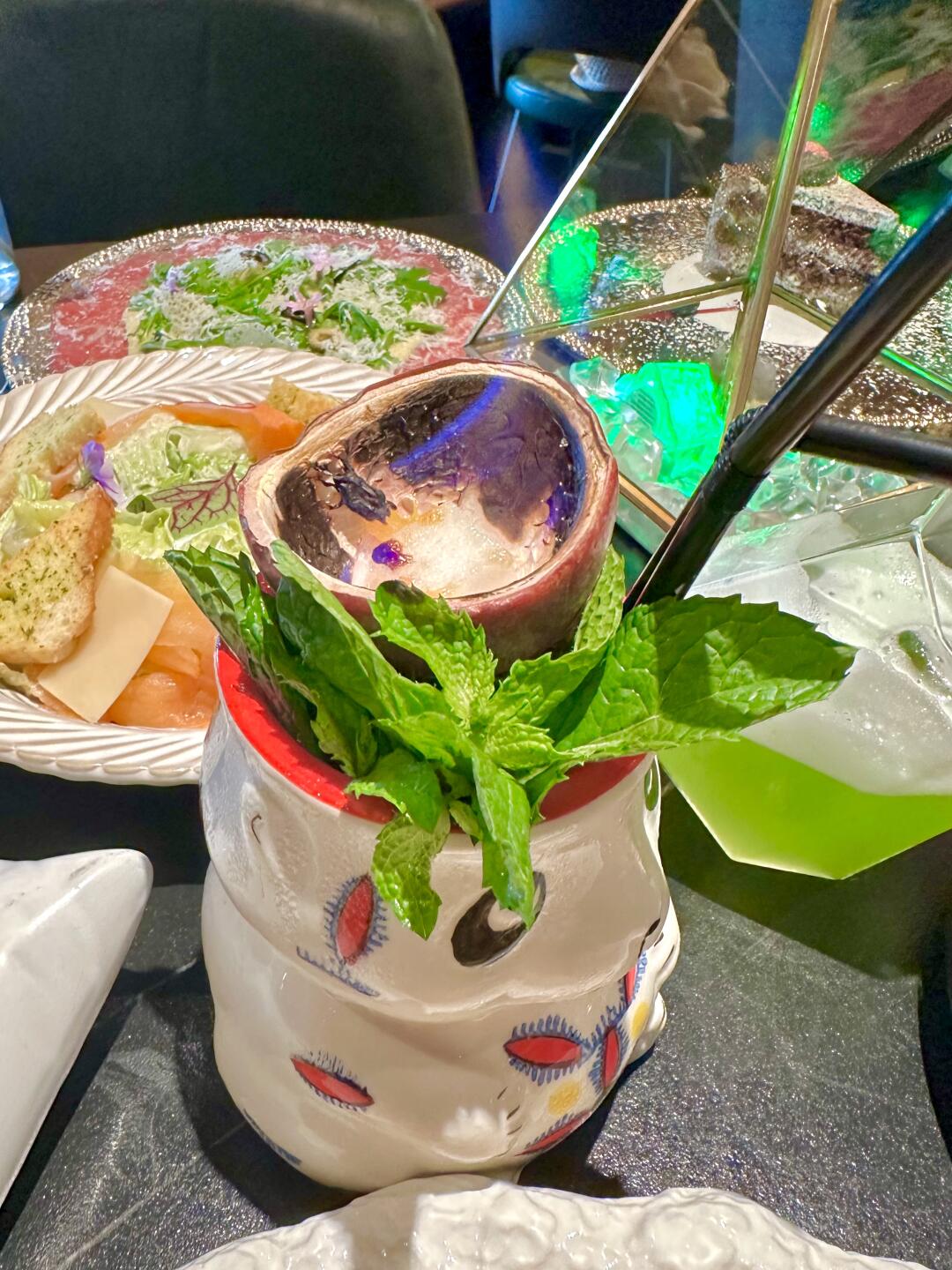 朗姆酒打底,鲜榨水果汁混薄荷叶捣出冰沙感,