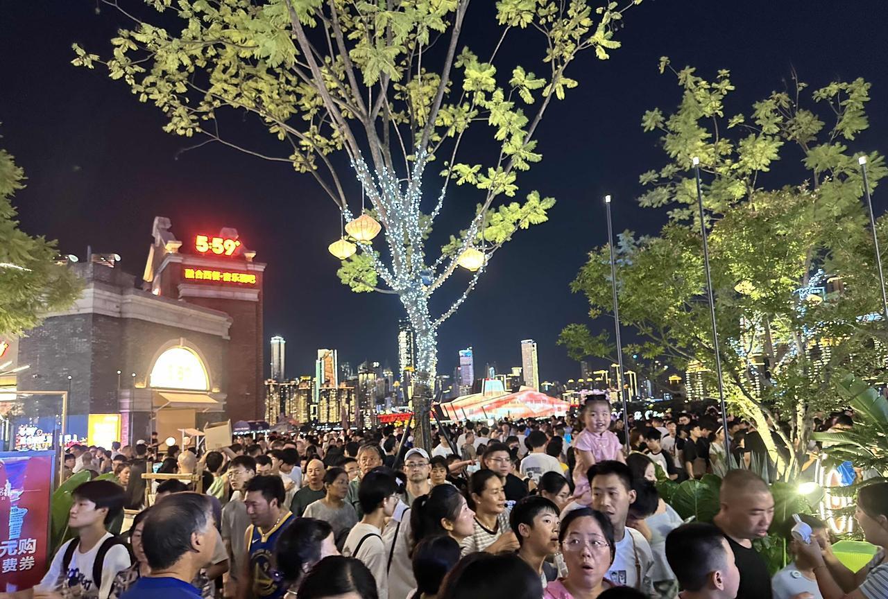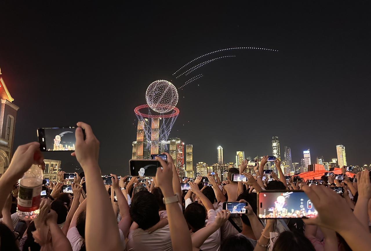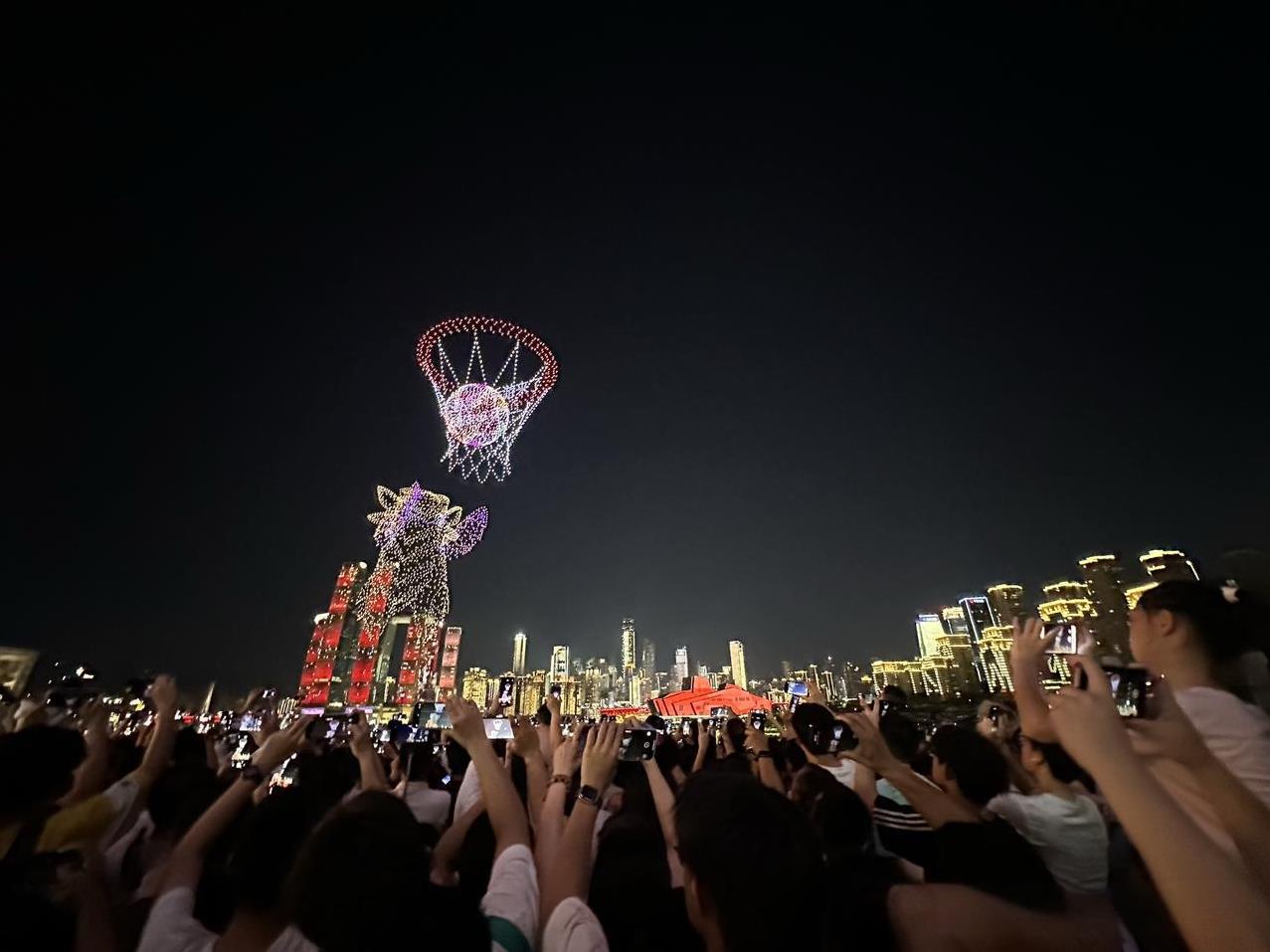 啊!重庆这么热的天,依旧人山人海啊!8月18日晚上8点半,库里中国行无人机灯光秀,吸引了大批篮球球迷和游客,挤爆了长嘉汇弹子石。 今天晚上有好几个秀都是篮球巨星库里的头像和投篮球动作,但是除此之外,几乎都是广告,惹来很多现场观众的吐槽……个别游客感觉这么热的天,就这?有点失望。 大熊猫小五依旧在,穿上蓝球衣与库里切磋篮球技艺。 不得不说,如果没有央企长安,很难想象重庆会变成什么样子呢! 虽然今天围观的人很多,但是与五一节相比还是少很多,与618万架无人机打破吉尼斯世界纪录相比,人流量就要少得多啦! 截止目前,重庆常态化无人机灯光秀,累计有超过400万人到现场观看,还是很火的了。(投入的安保人员及经费,可能相当可观吧) 只是,重庆主城区好像就有1000万人吧? 如果以湖南省长沙市取消常态化的烟花大会焰火晚会的理由之一来看,或许,很多人会强烈支持取消重庆无人机灯光秀吧? 只是,也依旧有很多很多当地人和网友,一直都在强烈建议和呼吁湖南省恢复长沙的常态化的烟花大会焰火晚会。#光线摄影世界曾兰谈天说地# #头号创作者激励计划#