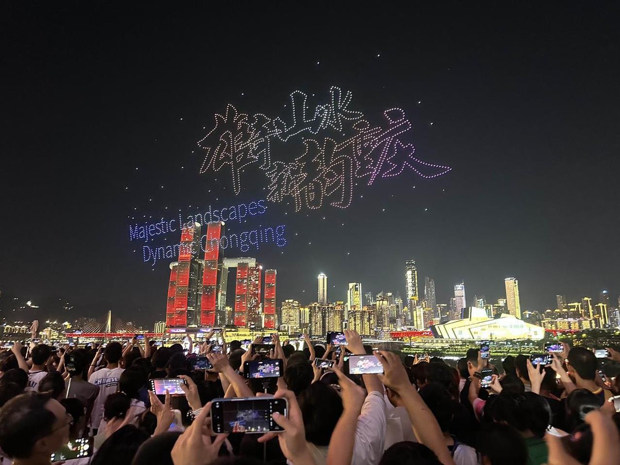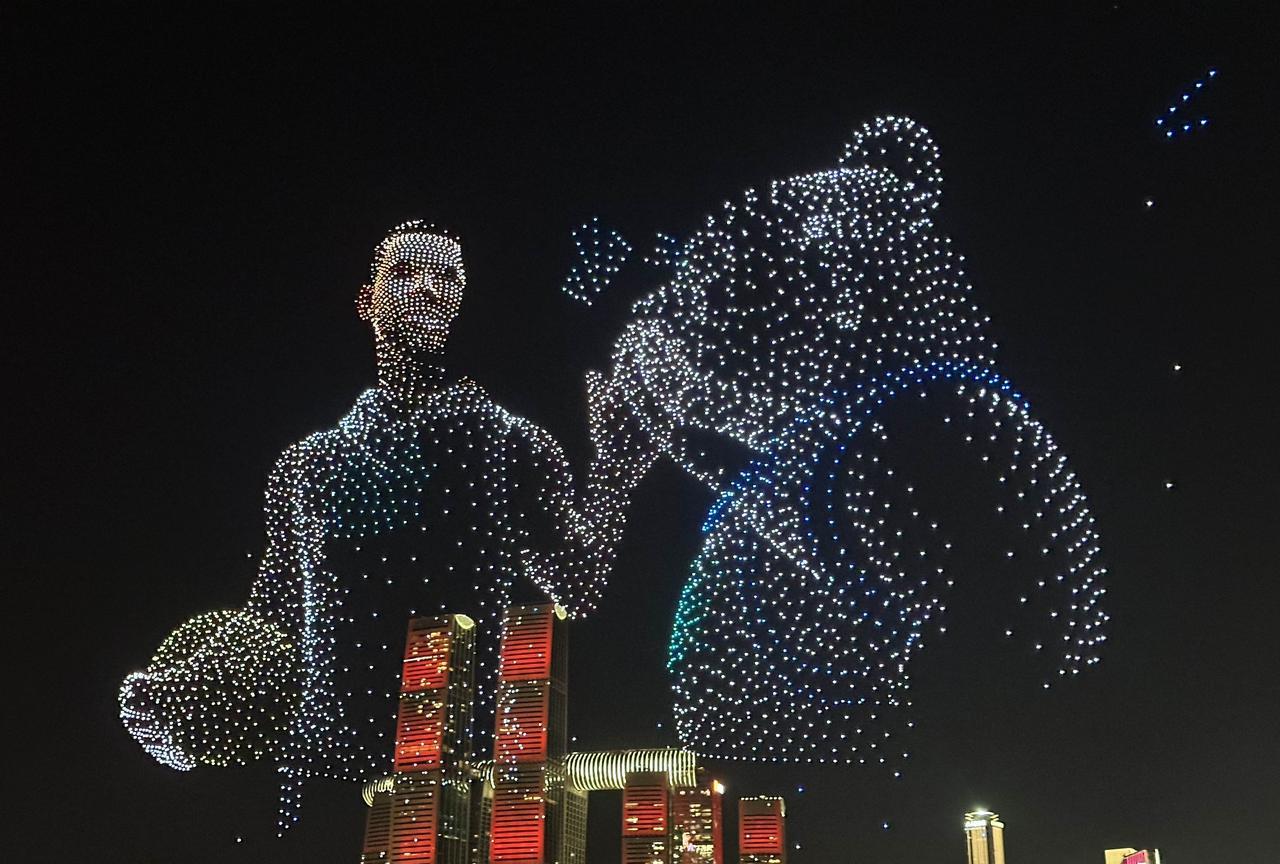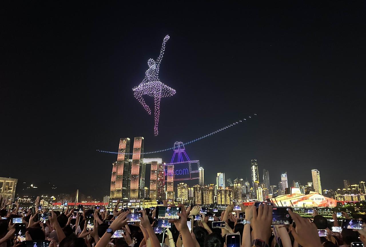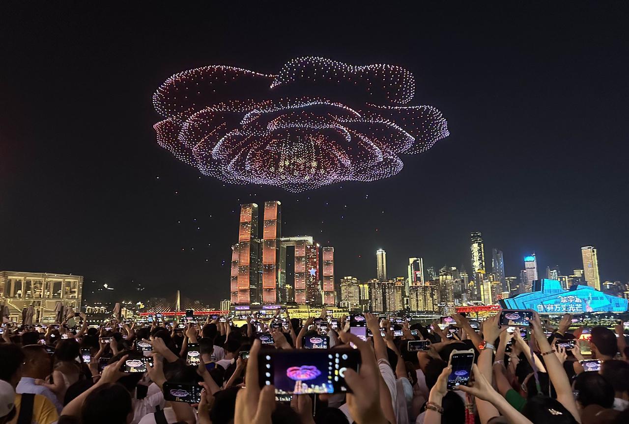 啊!重庆这么热的天,依旧人山人海啊!8月18日晚上8点半,库里中国行无人机灯光秀,吸引了大批篮球球迷和游客,挤爆了长嘉汇弹子石。 今天晚上有好几个秀都是篮球巨星库里的头像和投篮球动作,但是除此之外,几乎都是广告,惹来很多现场观众的吐槽……个别游客感觉这么热的天,就这?有点失望。 大熊猫小五依旧在,穿上蓝球衣与库里切磋篮球技艺。 不得不说,如果没有央企长安,很难想象重庆会变成什么样子呢! 虽然今天围观的人很多,但是与五一节相比还是少很多,与618万架无人机打破吉尼斯世界纪录相比,人流量就要少得多啦! 截止目前,重庆常态化无人机灯光秀,累计有超过400万人到现场观看,还是很火的了。(投入的安保人员及经费,可能相当可观吧) 只是,重庆主城区好像就有1000万人吧? 如果以湖南省长沙市取消常态化的烟花大会焰火晚会的理由之一来看,或许,很多人会强烈支持取消重庆无人机灯光秀吧? 只是,也依旧有很多很多当地人和网友,一直都在强烈建议和呼吁湖南省恢复长沙的常态化的烟花大会焰火晚会。#光线摄影世界曾兰谈天说地# #头号创作者激励计划#