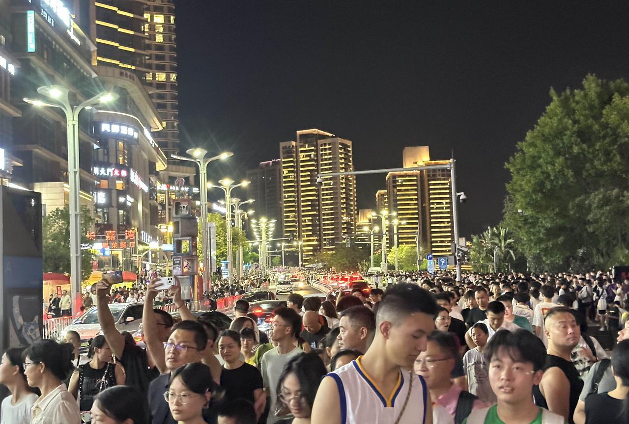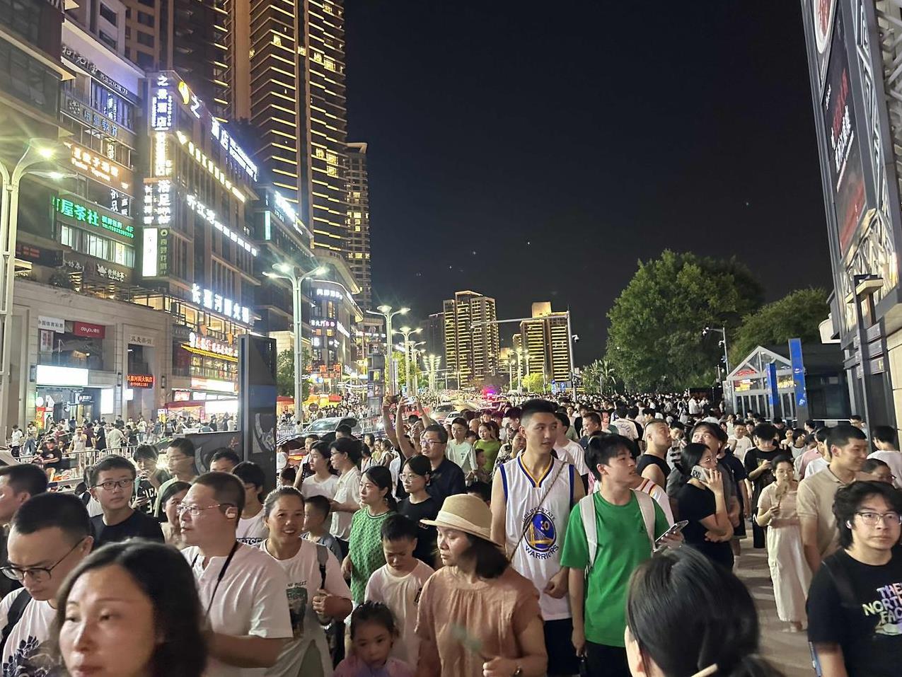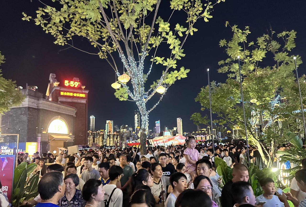 啊!重庆这么热的天,依旧人山人海啊!8月18日晚上8点半,库里中国行无人机灯光秀