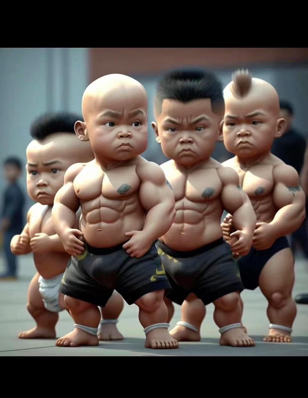AI扩图肌肉训练手办模型少年强则国强👍海滩海滩