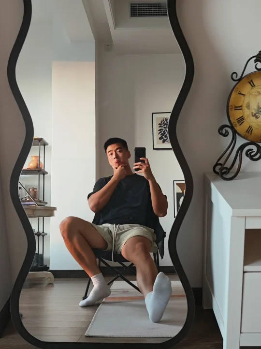 体育生的腿 见人不如健身 寸头 对着镜子自拍
