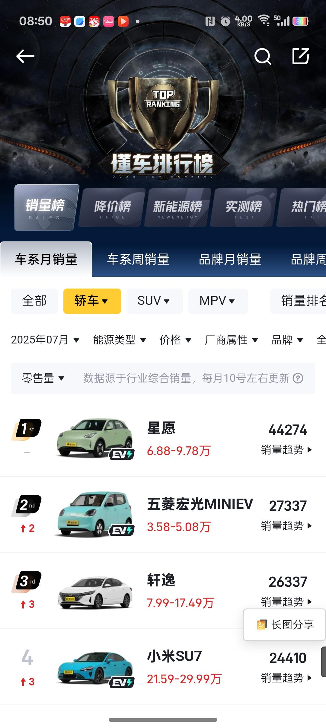 轿车榜看着星愿已经霸榜好久了,瞅了一眼SUV榜,突然发现博越L突然异军突起,一下上升了19名,这是有什么新购车政策么?突然这么猛