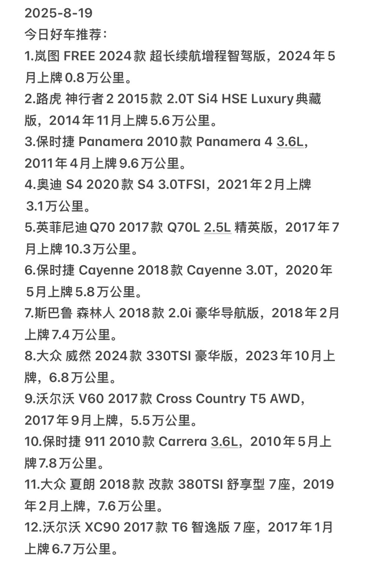 8月19日在售精品车源推荐。今天推荐的大部分都是诺诺外地分站的车源哦...