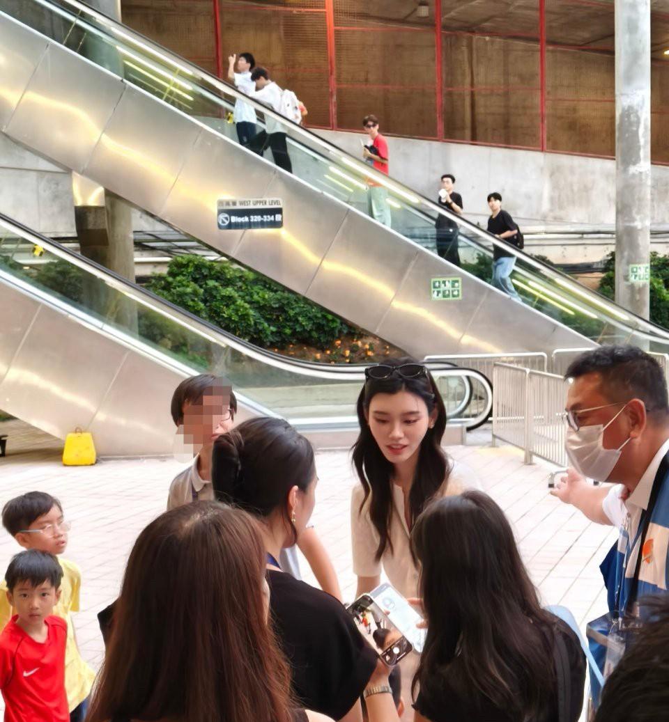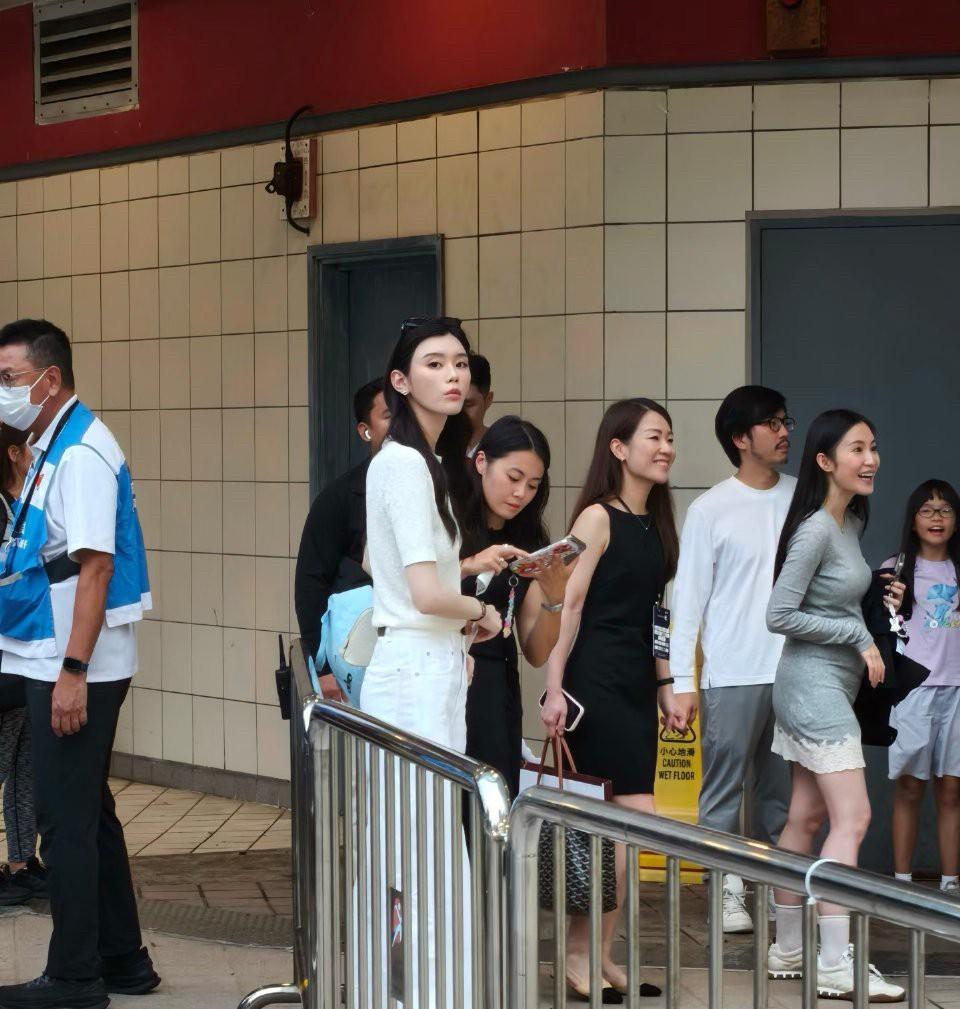 C罗香港比赛,奚梦瑶也带儿子去看了!超模到底是超模,在人群里简直白到发光,太抢眼了!她儿子也长得好高啊,这基因绝了,将来肯定是个大帅哥!