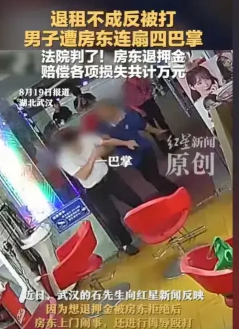 湖北武汉,男子开了一家理发店,生意一直不好,正好房租也快到期了,他就提前跟房东商量要退租,顺便把押金也退了,结果房东跟他说,要租满3年才可以退租,男子不乐意了,他反问房东,那签合同还有什么意义,结果房东扬起手掌,就打了男子4巴掌。
