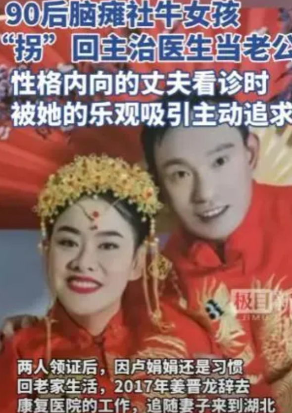 8年前,湖北一90后脑瘫女孩,前往山西一所医院做康复治疗,万万没想到,回家时竟将大自己8岁的主治医生“拐”回家当老公,多年来丈夫每天为她穿衣洗漱、喂饭,网友:这女子有本事,上辈子一定是拯救了银河系!