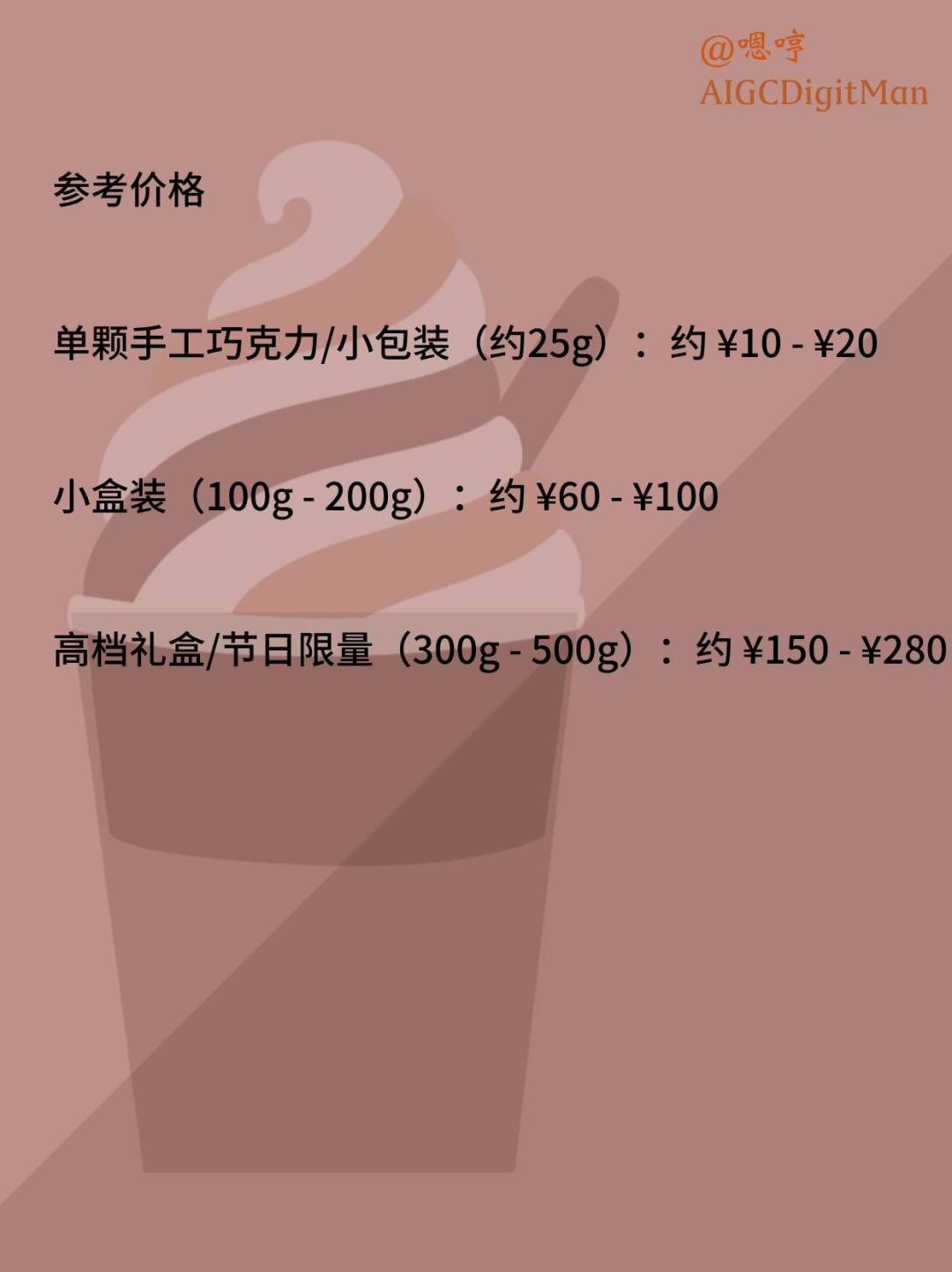 单颗手工巧克力/小包装(约25g):约 ¥10 - ¥20
