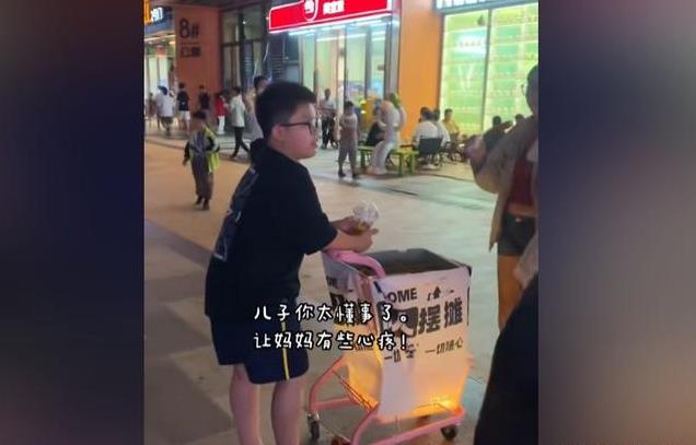 他坐在婴儿车上,用稚嫩的声音招揽顾客。他的身体状况反而成为了一种独特的“卖点”,吸引了不少路人的目光。