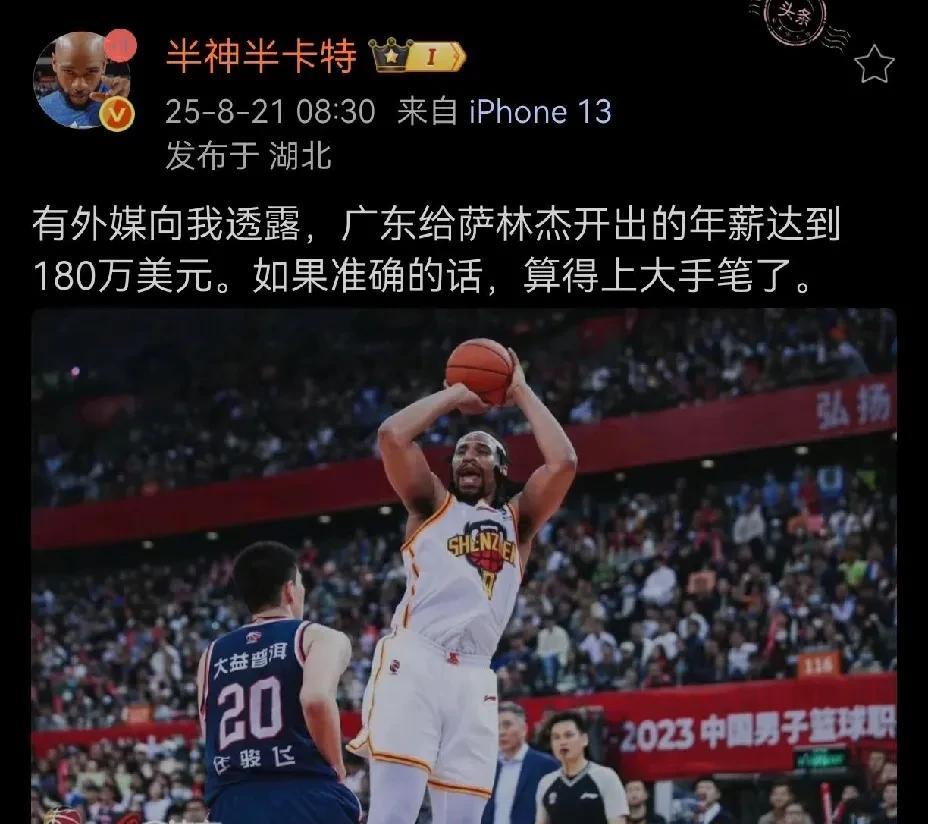 胡明轩迎来新帮手,朱芳雨憋大招,恕我直言不讳,萨林杰根本不值180万美元,三思而后行吧,辽宁男篮报价100万美元都溢价。CBA距离31号国内球员注册截止日剩10天,媒体人透露:广东宏远出夏+一个一队球员+现金换龙狮内线焦泊乔,说的比较隐晦!我倒认为是被郭士强带去国家队镀的李祥波,看看人家辽宁男篮,用最小的成本签回莫兰德,一个北控放弃的萨林杰竟还要这么贵?广东宏远还有多少预算可以签第四外援!
