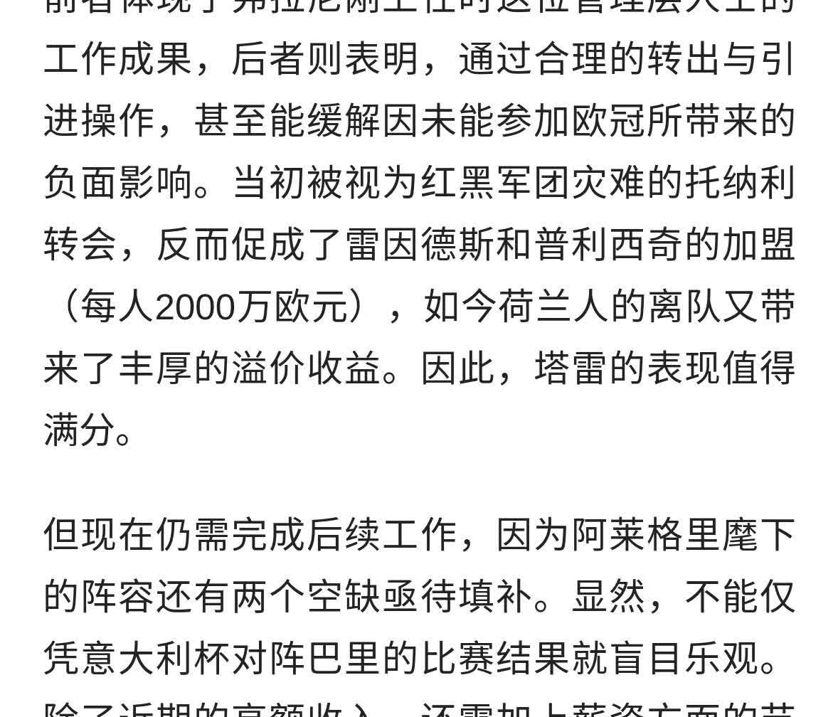 奥尔迪内:塔雷表现满分!他证明了专业人士可弥补未有欧冠的损失
