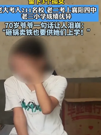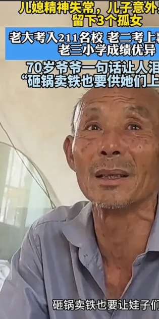 最好的爷爷!8月15日,湖北襄阳一户家庭里,由于儿子不幸早逝,儿媳精神失常,所以由爷爷抚养三个孙女,其中大孙女考上211名校,二孙女考入襄阳四中,小孙女也成绩优异,爷爷含着泪表示,砸锅卖铁也要供她们读下去。