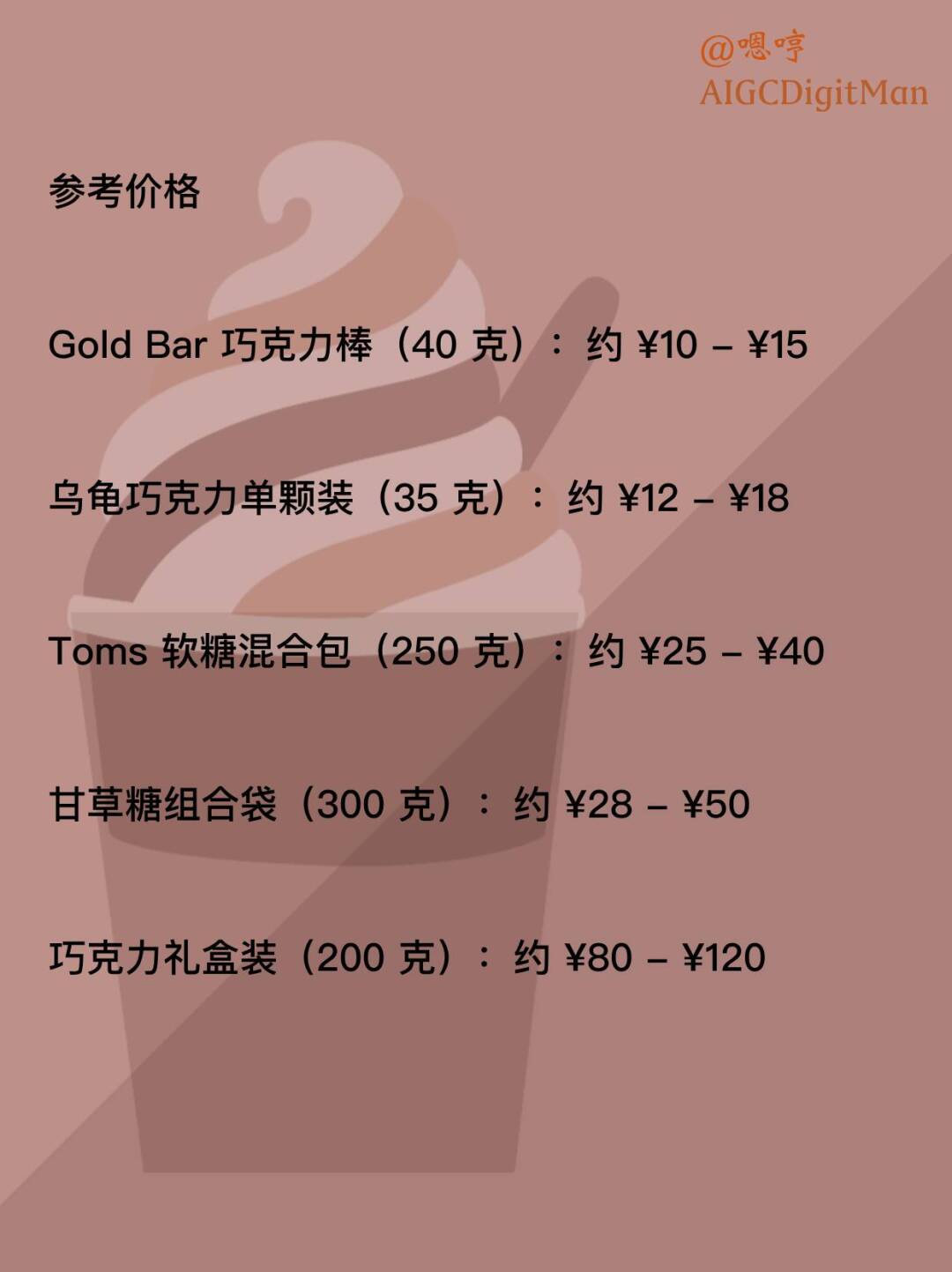 乌龟巧克力单颗装(35 克):约 ¥12 - ¥18