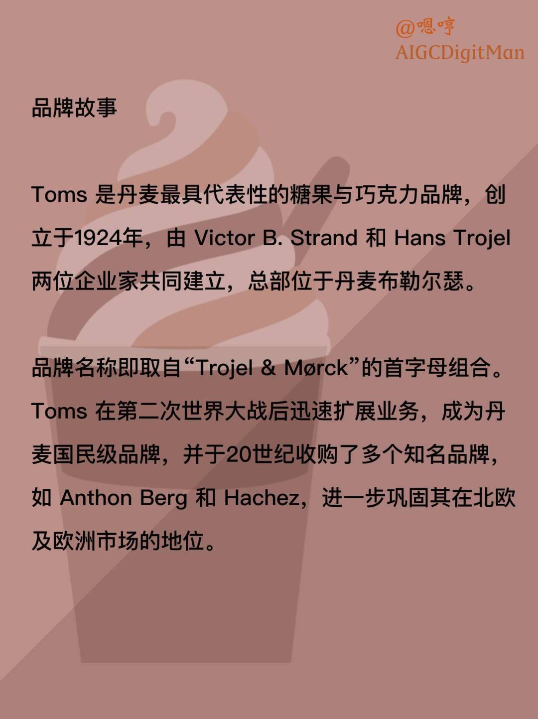 AIGC deepseek aigc 每天认识一个品牌 糖果 硬糖 巧克力 toms 丹麦