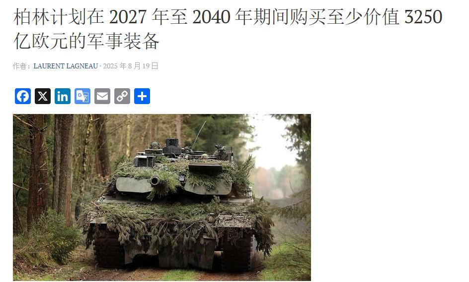 德国政府计划在2027~2040年购买总计至少价值3250欧元的军事装备,平均每