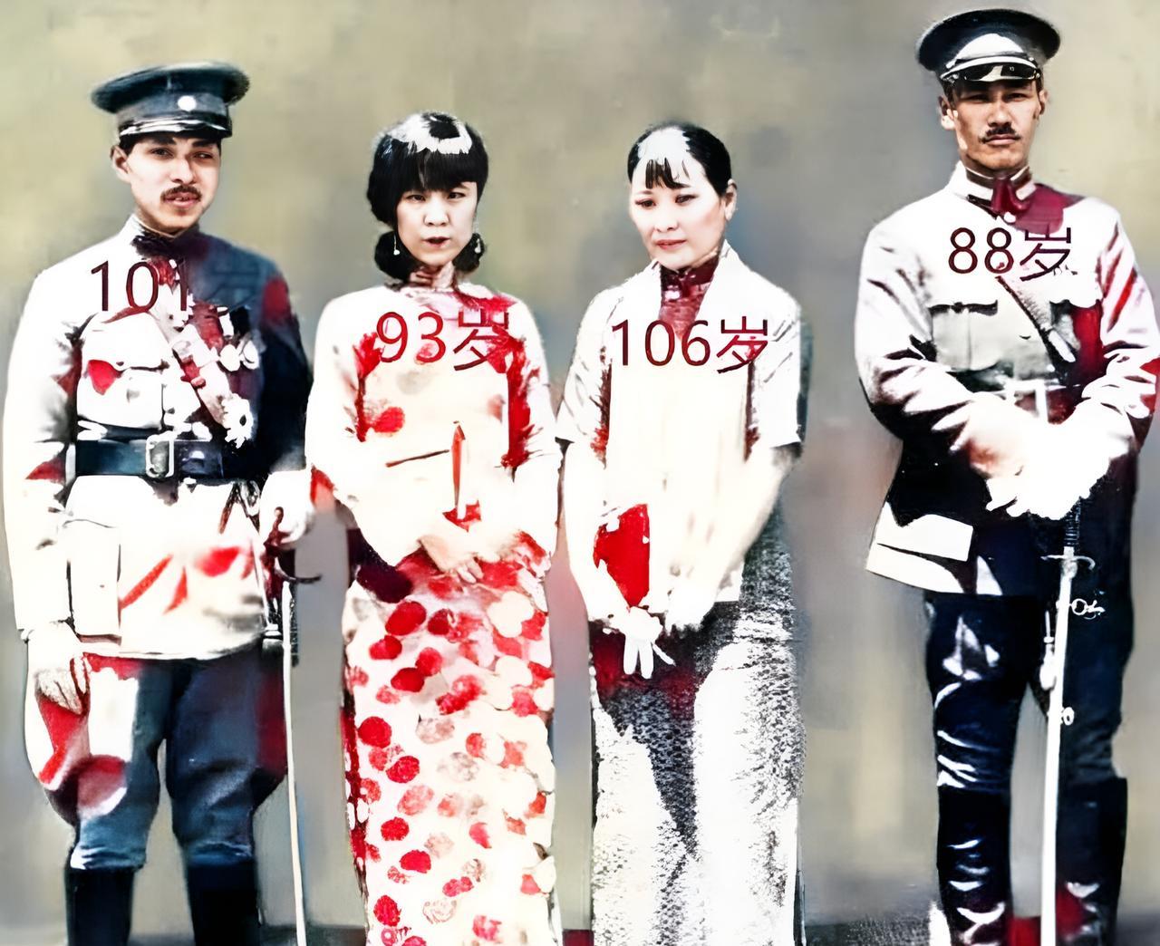 这四人的年龄相加足有388岁。如果不是最右边个头最高的男人拉低了寿数,左边三位的年龄相加达到300岁,平均每人一百岁。此时,四人都不知道自己或别人的寿数,但最终每个人的寿数都很高。这也绝不是巧合。 通过此四人是否能揭开影响长寿的因素。许多人认为影响一个人长寿最核心的因素是基因。长辈们长寿,家族晚辈就会长寿,因为他们都有长寿基因。可是,这四人的长寿并非因为基因。 蒋中正的父亲蒋肇聪53岁去世,母亲王采玉58岁去世;宋美龄的父亲52岁去世,母亲62岁去世;于凤至的父亲于文斗73岁去世,母亲不祥,应该不超过丈夫于文斗;张汉卿的父亲53岁去世,母亲赵春桂37岁去世。 可见,这四人的父母亲的寿数最高的也只有73岁。过去,73岁属于高寿,但相比晚辈的寿数简直小巫见大巫。因此,长寿的秘诀并不在于基因。