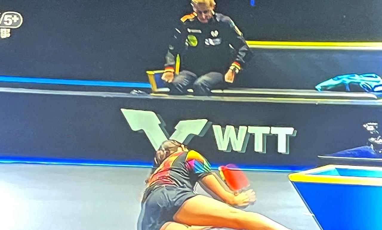 有点棋逢对手的意思, 两人球打的短平快, 虽然4:1拿下比赛, 但有两局都打到15:13。 陈熠对阵沙宾温特, 整场打下来感觉, 沙宾温特打球有点男子的特点, 但在细节地方处理的还是差点, 感觉有点粗, 老被陈熠在落后的情况下逆转。 陈熠这场比赛打的挺逗, 老给沙宾温特打趴下, 看她俩打的挺过瘾, 齐嚓咔嚓不拖泥带水, 挺有观赏性[大笑]