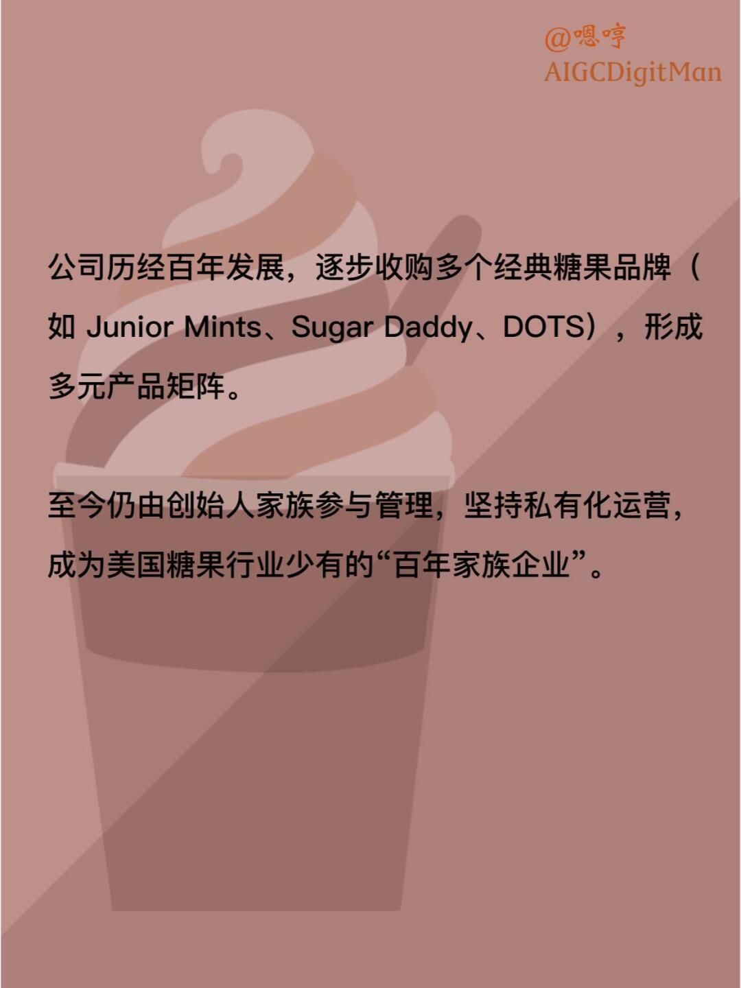 公司历经百年发展,逐步收购多个经典糖果品牌(如 Junior Mints、Sugar Daddy、DOTS),形成多元产品矩阵。