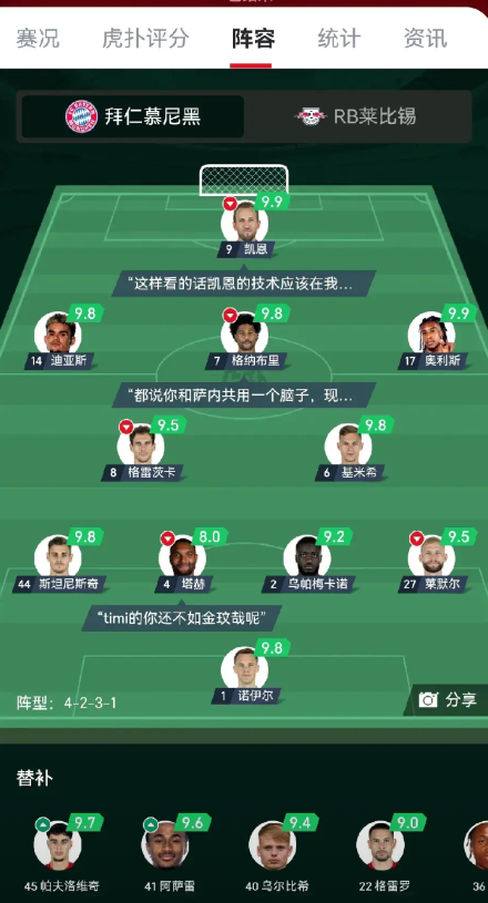 太残暴了!拜仁这阵容除了单薄外堪称完美啊。英超即战力的含金量还在上升。 凯恩,迪亚斯,奥利塞这仨踢德甲有点欺负人了。 这场比赛也体现出萨内的离开是多么的正确。 现在这支拜仁不仅前场流畅度变高了,连射术都变好了,连小黑胖子都活了,感谢加拉塔萨雷老铁。 看完揭幕战,这赛季的德甲又没悬念了,可以直接颁发冠军给拜仁了。 工资凯恩又提前预订了一个冠军。 希望拜仁别因为一场大胜就不买人了,留住大金子,再买个替补中锋和一个替补边锋就可以了。