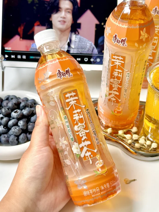 康师傅茉莉蜜茶可讲究了!用的都是横州头茬茉莉花骨朵儿,配上特选绿茶,清新的茉莉香混着茶香,在嘴里散开,连呼吸都带着浪漫花香!🌸