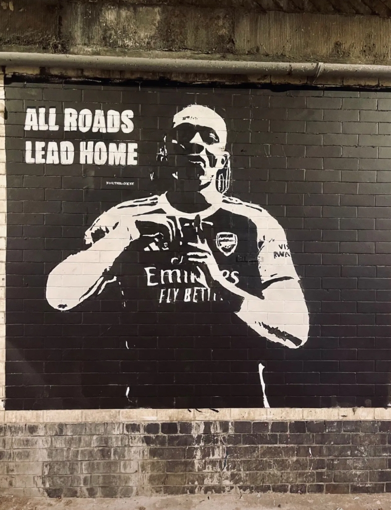 埃泽大反转加盟阿森纳后,伦敦的涂鸦艺术家在酋长球场外的涂鸦墙上创作了一幅作品,但