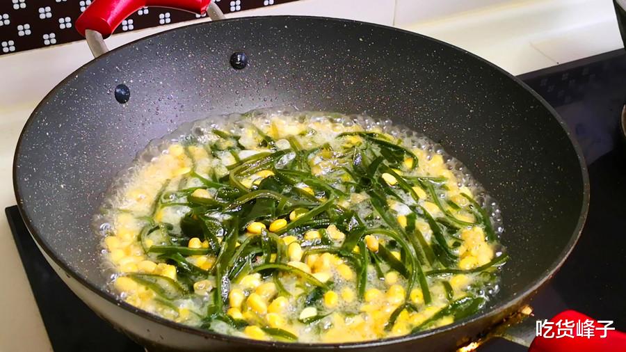 2.再取一把干海带,用温水泡软,再用淘米水多搓洗几遍,洗掉海带表面的杂质和粘液,然后切成丝备用。也可以直接取一把鲜海带清洗干净后切丝备用。煮黄豆时加上适量的海带,味道会格外鲜美!