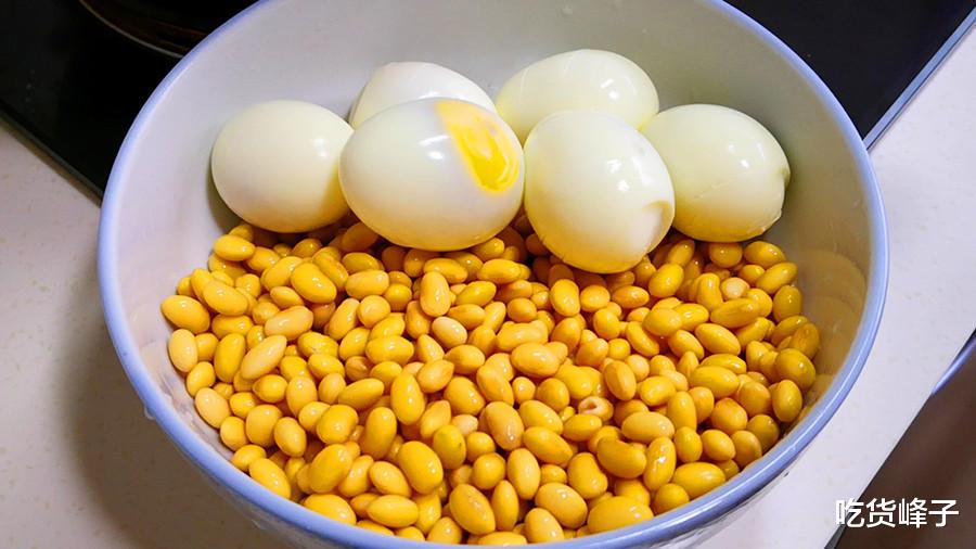 5.黄豆大约煮20分钟后就熟了,这时的黄豆和鸡蛋也已经入味了,我们再大火收一下汤汁,然后就可以关火出锅了,太香了!