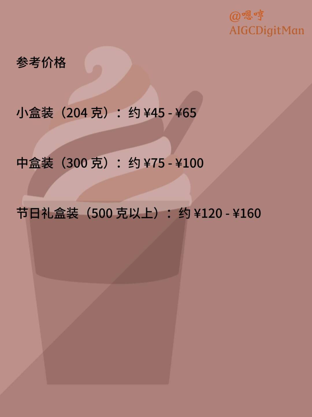 中盒装(300 克):约 ¥75 - ¥100