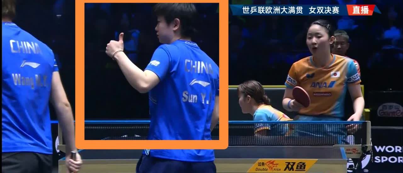 在今天进行的WTT欧洲大满贯瑞典站女双决赛中,发生了特别让人动容的一幕。当时比赛进行到了关键的第五局,中国选手王曼昱完成了一次非常精彩的强攻,帮助中国队率先得分。值得注意的是,在王曼昱得分之后,孙颖莎立刻伸出了大拇指为自己的好搭档点赞,这样的场面看的我热泪盈眶。 在如此关键的一场比赛中,孙颖莎和王曼昱展现出了中国队的团结和和睦。