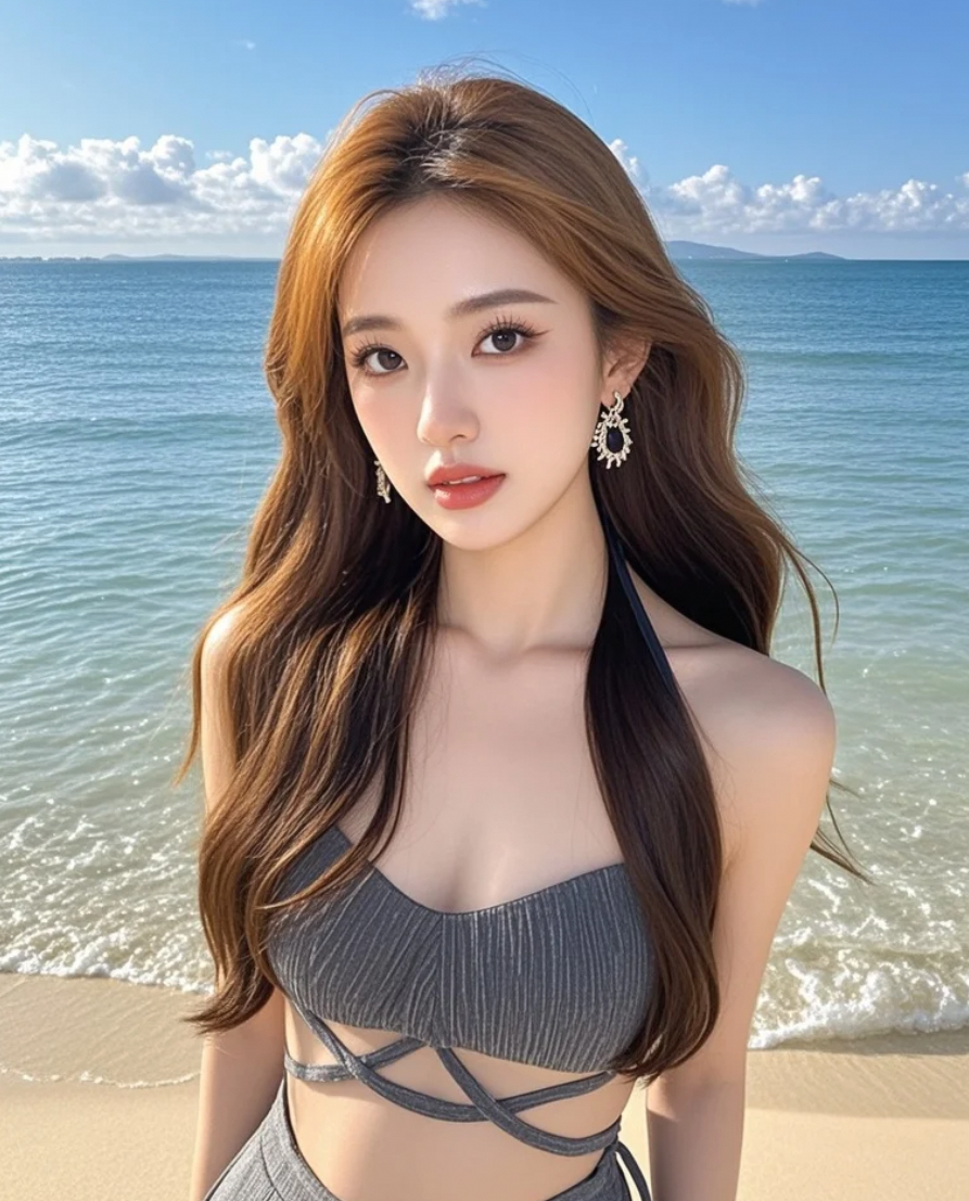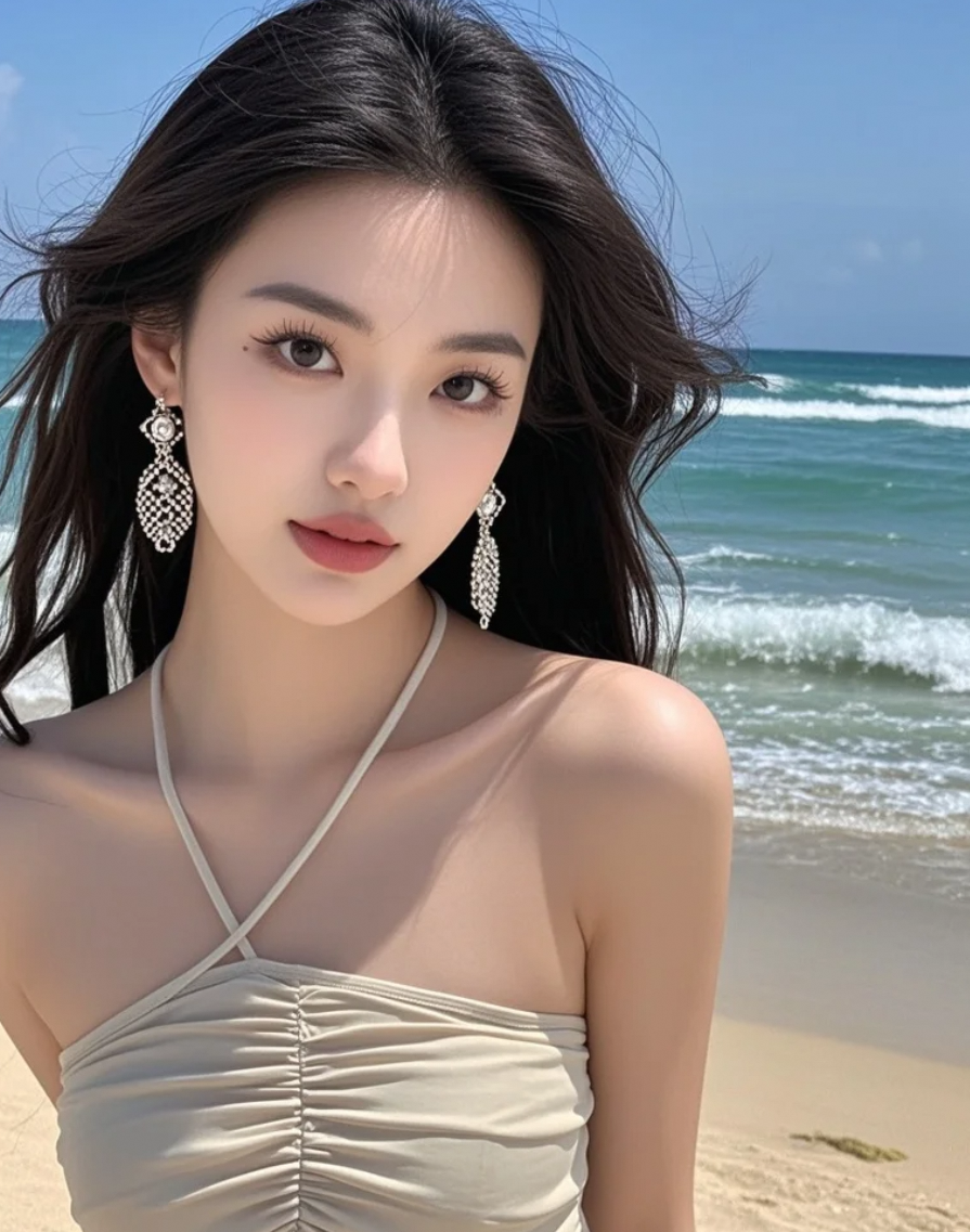 沙滩自拍ing,海风撩发,你猜浪花说了什么悄悄话?