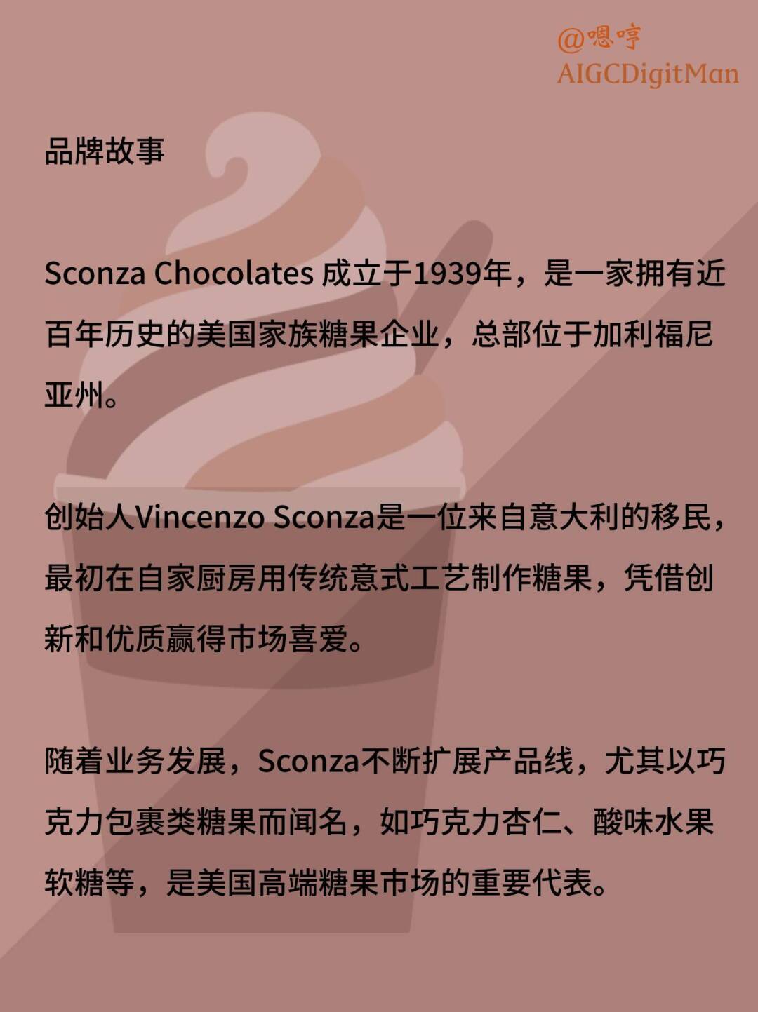 Sconza Chocolates 成立于1939年,是一家拥有近百年历史的美国家族糖果企业,总部位于加利福尼亚州。