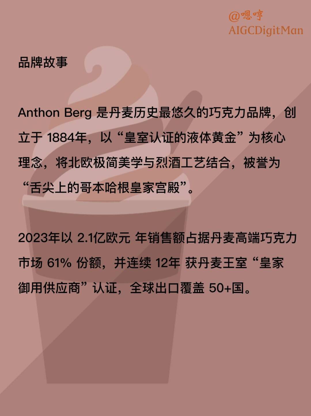 AIGC deepseek aigc 每天认识一个品牌 糖果 硬糖 巧克力 爱顿博格 丹麦