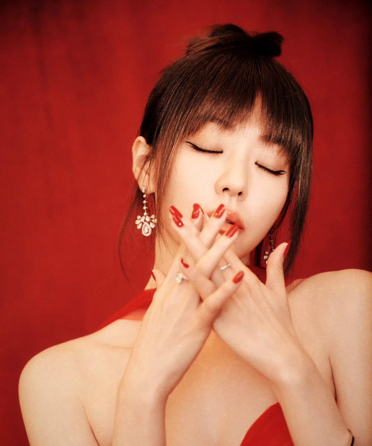 张靓颖红裙性感炸场!皮肤白到发光,眼神自带故事感,抬手捂心口、捧花贴脸,曲线勾人,美成焦点收割机!