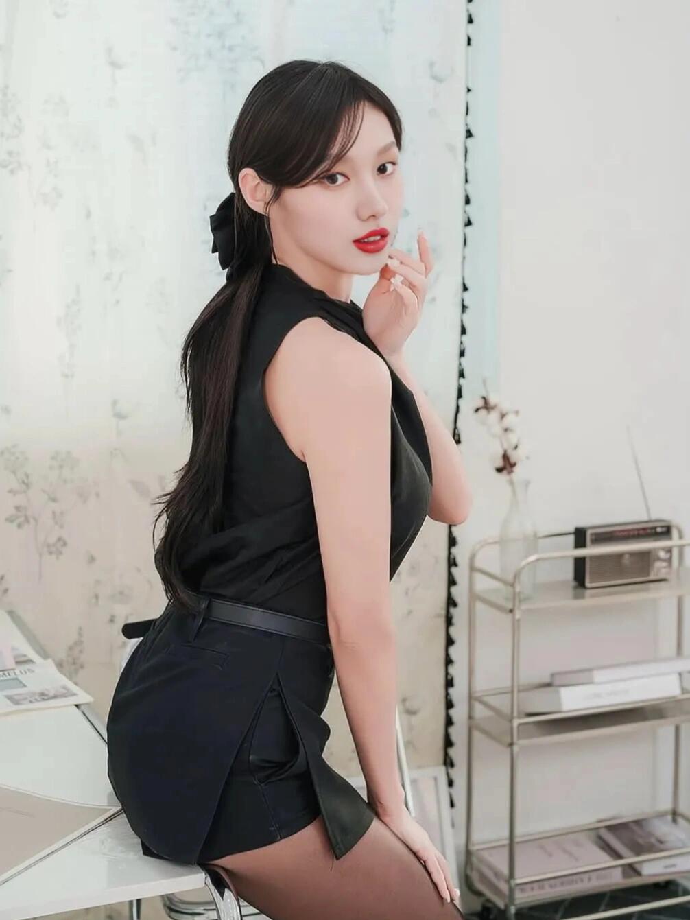 黑丝配小黑裙+高跟,显瘦又高级,职场小心机直接拿捏