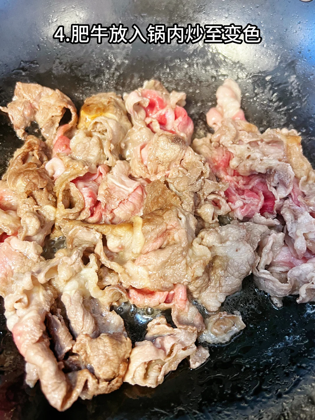 6、米饭打底,铺上肥牛,松茸,浇上盐葱酱,开吃