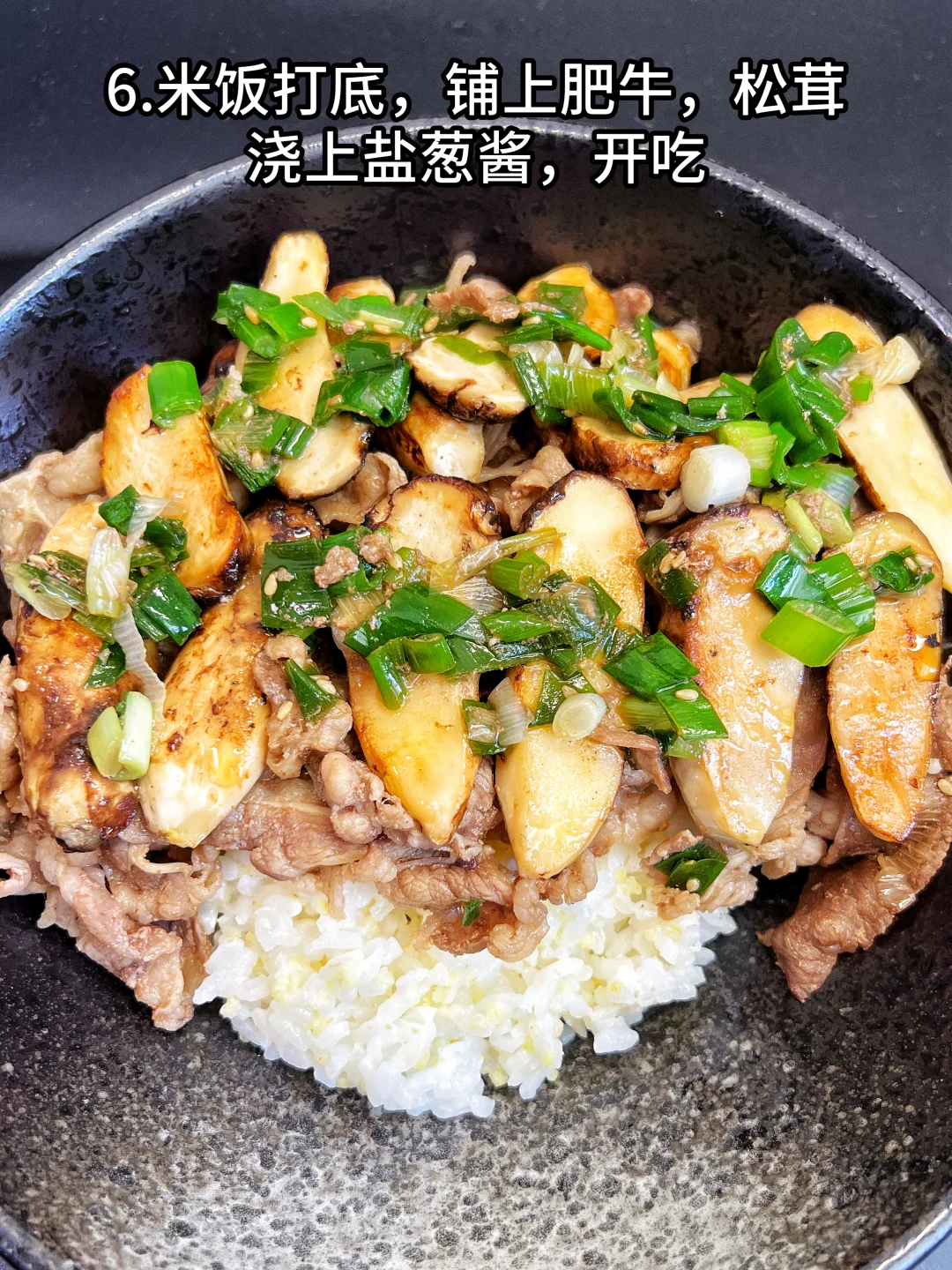 盐葱酱肥牛松茸饭,简单做鲜到骨子里💕
