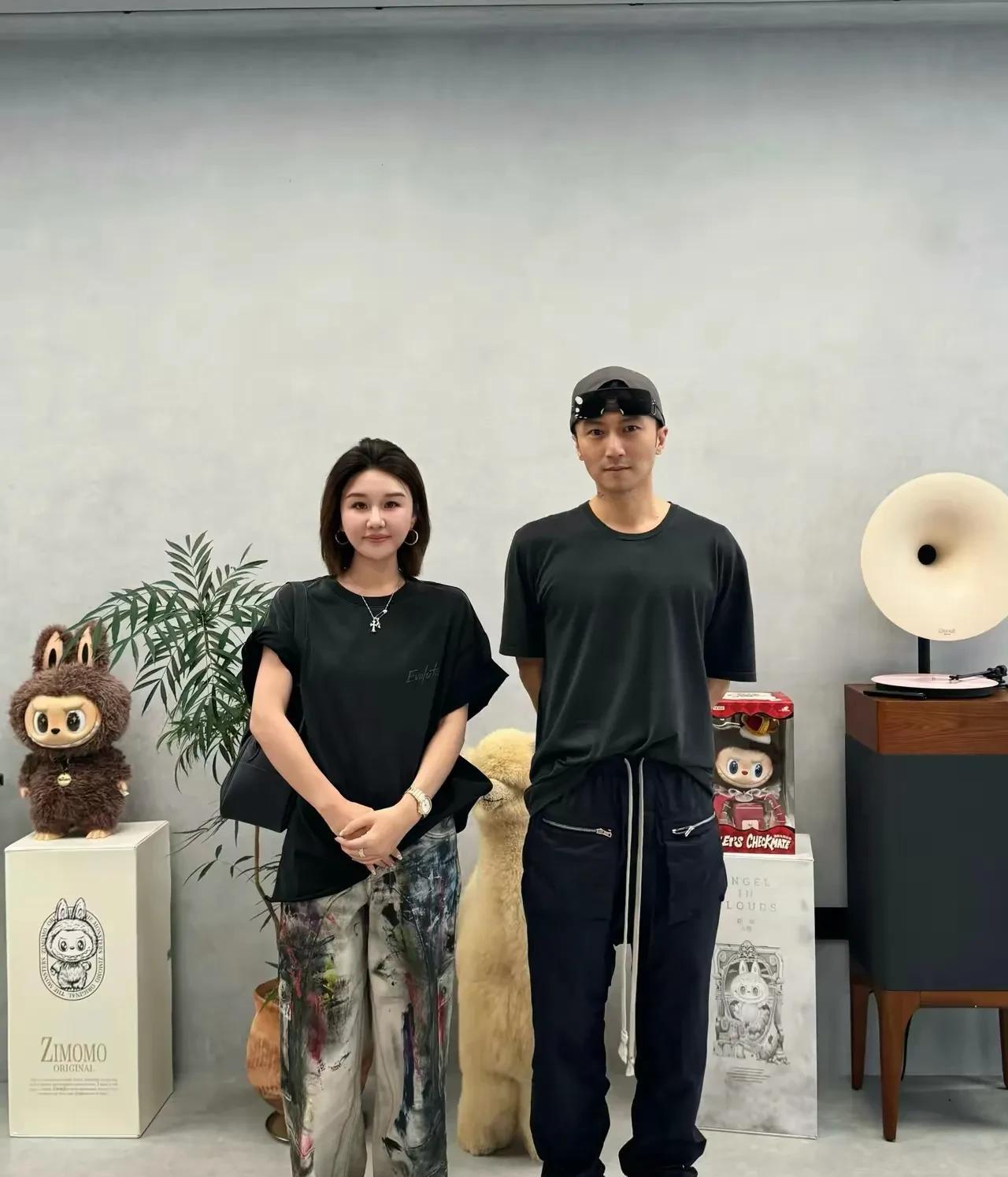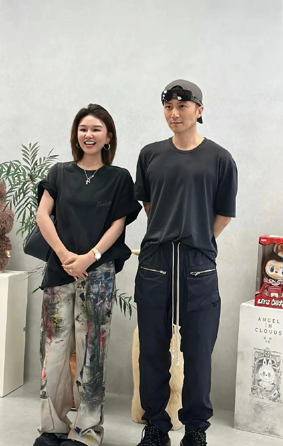 谢霆锋和女粉丝合影,大明星的穿着打扮和普通人就是得有点区别啊,裤腰绳子都快耷拉到