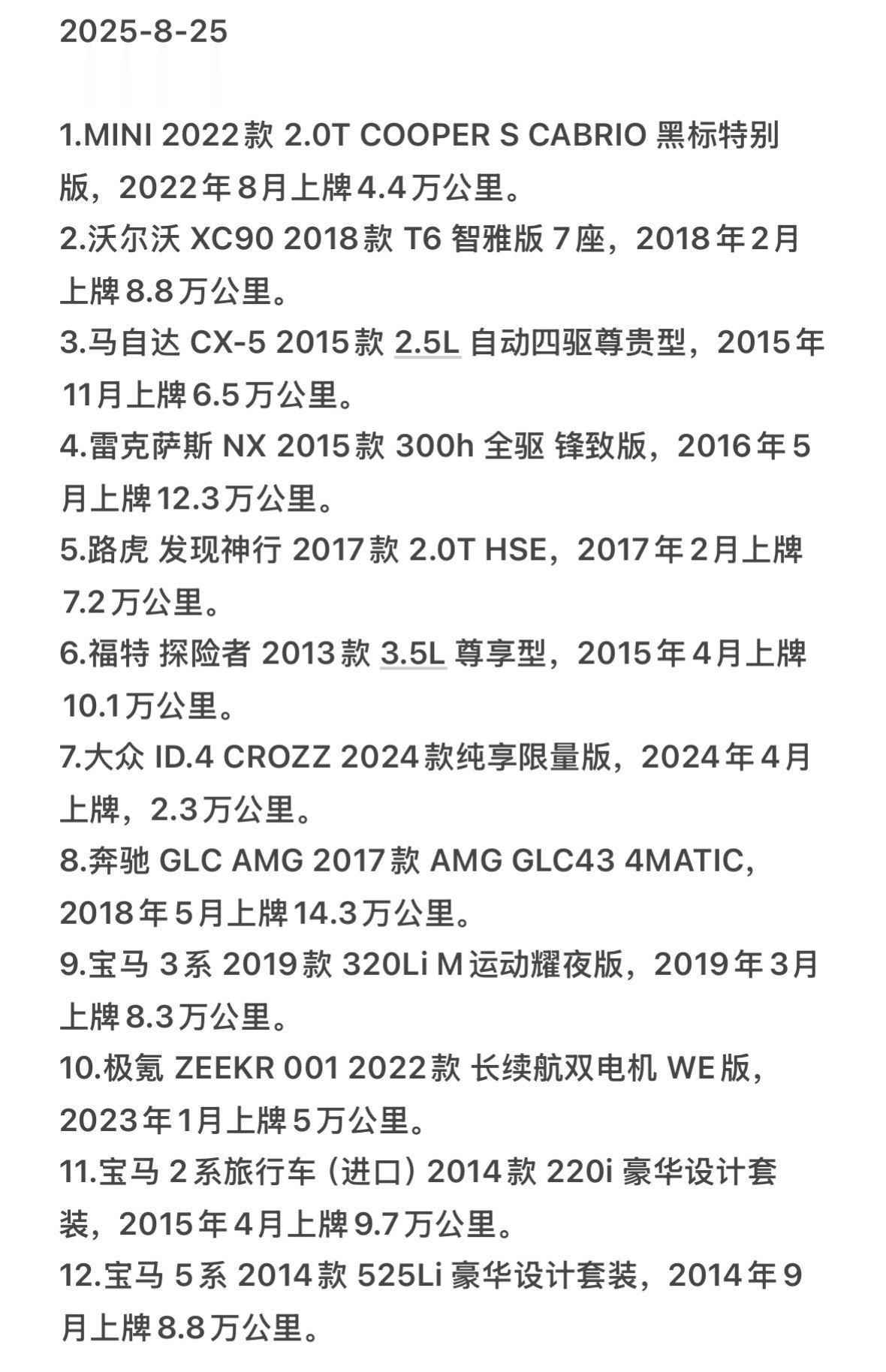 8月25日在售精品自营车推荐。有喜欢的车源,欢迎随时私信我哦,车辆详细信息在评论区噢~