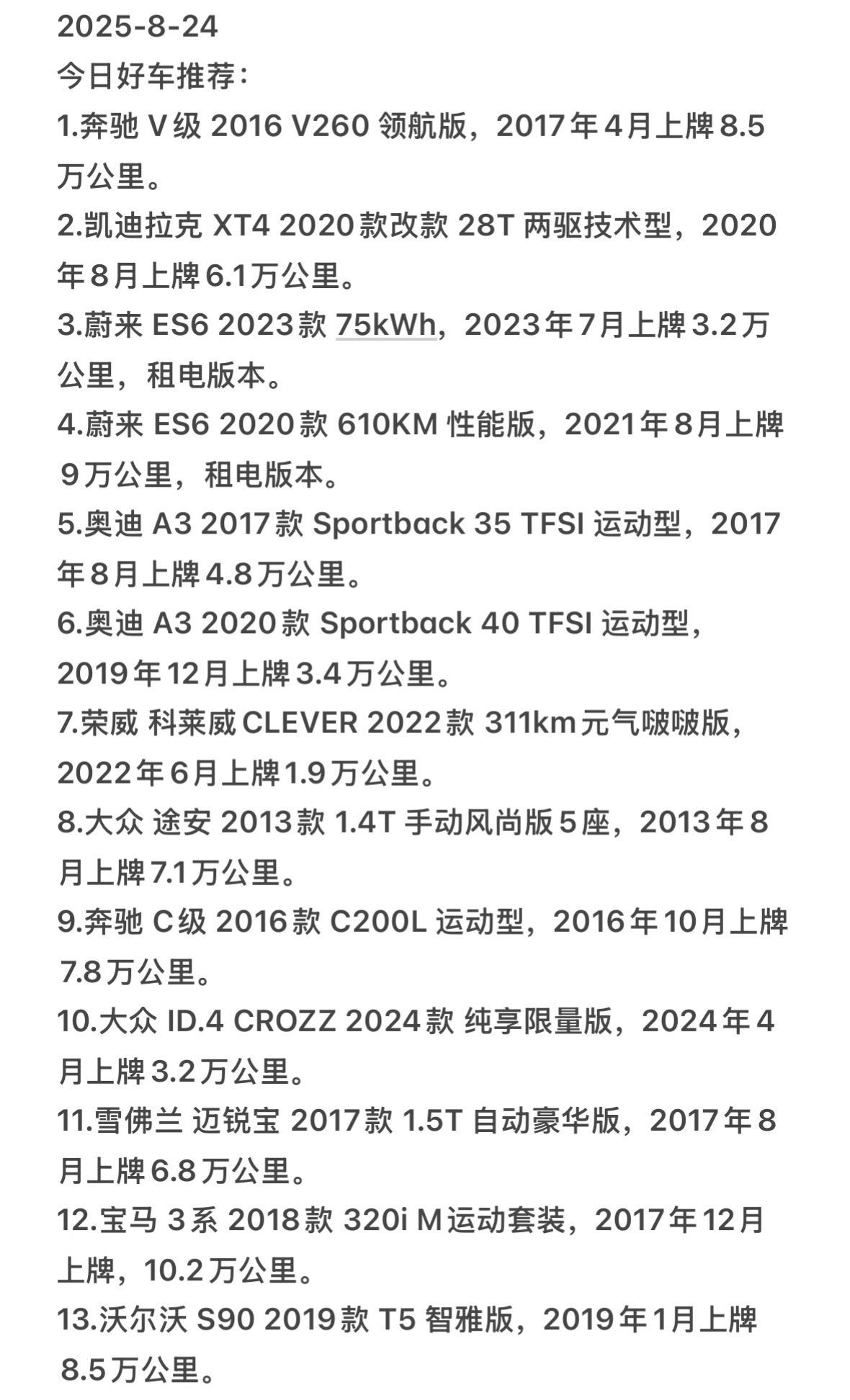 8月25日在售精品自营车推荐。有喜欢的车源,欢迎随时私信我哦,车辆详细...