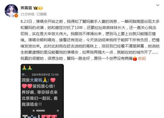 吃相太难看!歌手黄霄云舅妈居然上了热搜! 有个证据证明黄霄云是故意用舅妈炒作,她