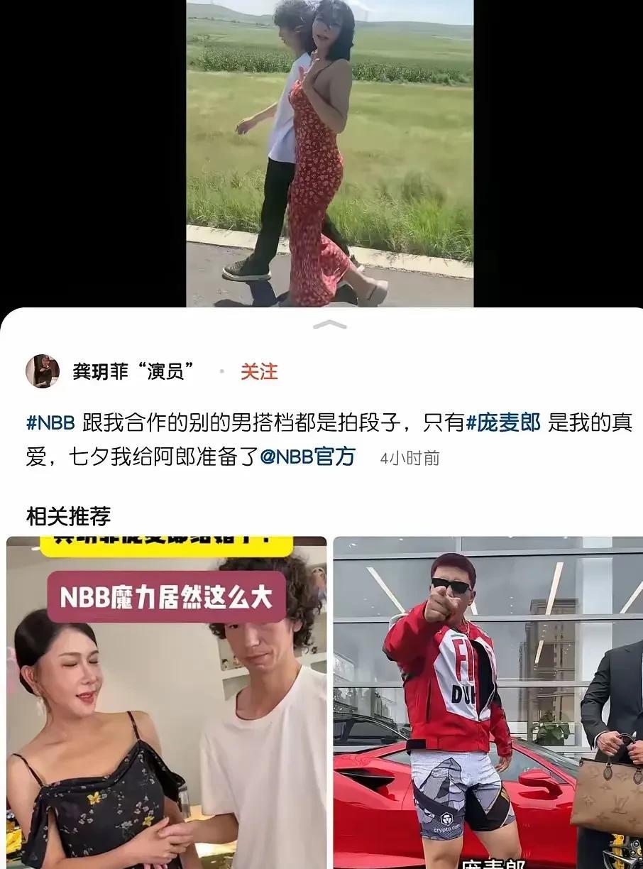 阿菲爱上了阿旁 龚玥菲七夕前高调向庞麦郎示爱 并说跟她合作的男搭档拍的视频都只是段子 此前龚玥菲还带女儿到庞麦郎老家,让女儿叫他干爹,还办了庆祝宴。 龚玥菲2012年演《新金瓶梅》进演艺圈,身材火辣但始终没大红大紫。庞麦郎靠《我的滑板鞋》火过一阵,也是昙花一现。他俩这是真爱还是炒作,真是让人好奇。