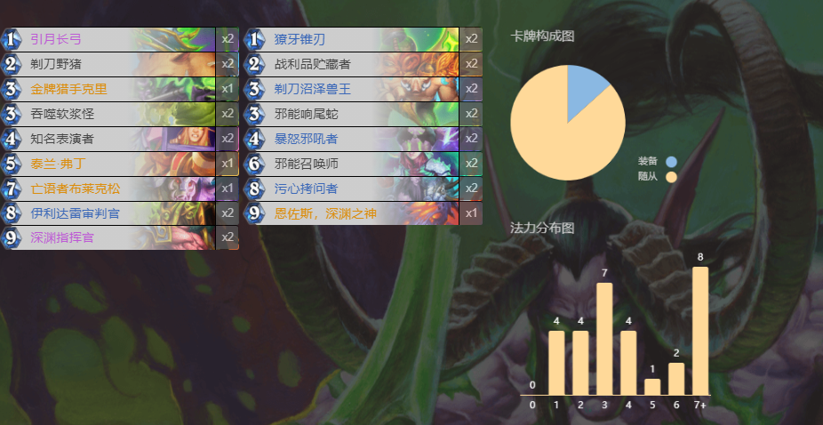 总的来说“大哥瞎”之所以能在目前天梯中崛起,不外乎是因为新卡“吞噬软浆怪”与“邪能响尾蛇”两张低费高质量随从带来的前期场面,让本就无惧后期卡组的大哥瞎在面对快攻套牌时也有了相当的应对能力。