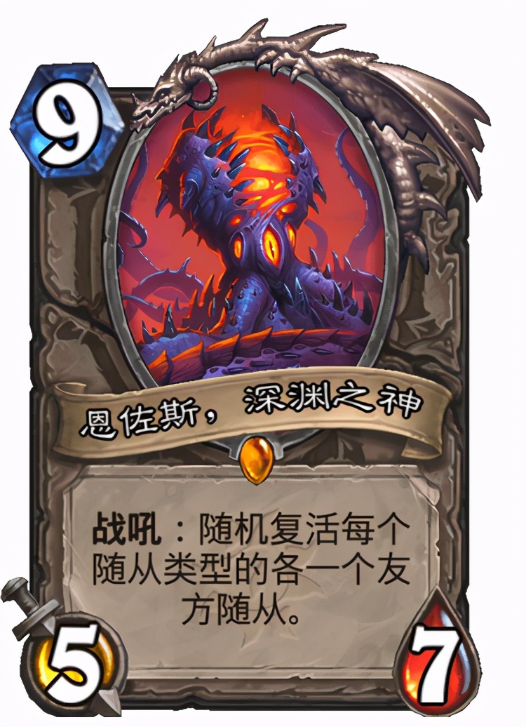 若遇见对手是“防战”、牧师这类职业时,对局往往会拖至到大后期,而此时在关键时刻,“大哥瞎”玩家使出最后一招杀招——“恩佐斯,深渊之神”(战吼:随机复活每个随从类型的各一个友方随从。)在对局的末期轻松掌控游戏的节奏。