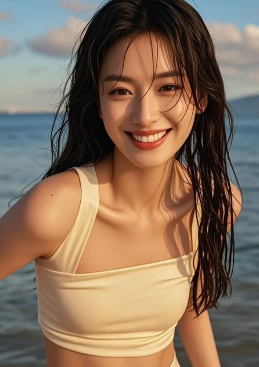 美女望向镜头,那一眼仿佛穿越了所有喧嚣与距离!