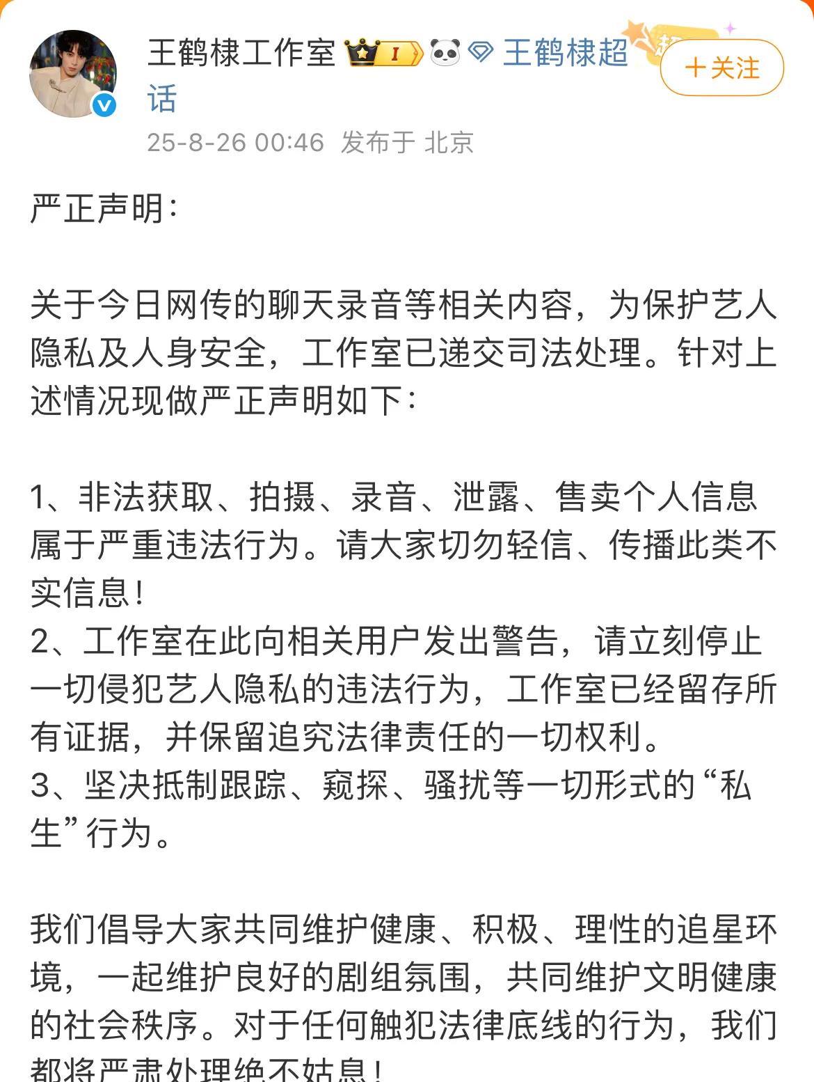 王鹤棣总算是出了这口恶气!窃听王鹤棣信息的网友进去了!她发文称王鹤棣公司很强硬