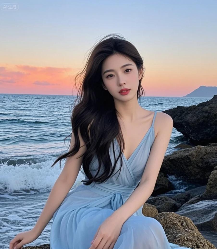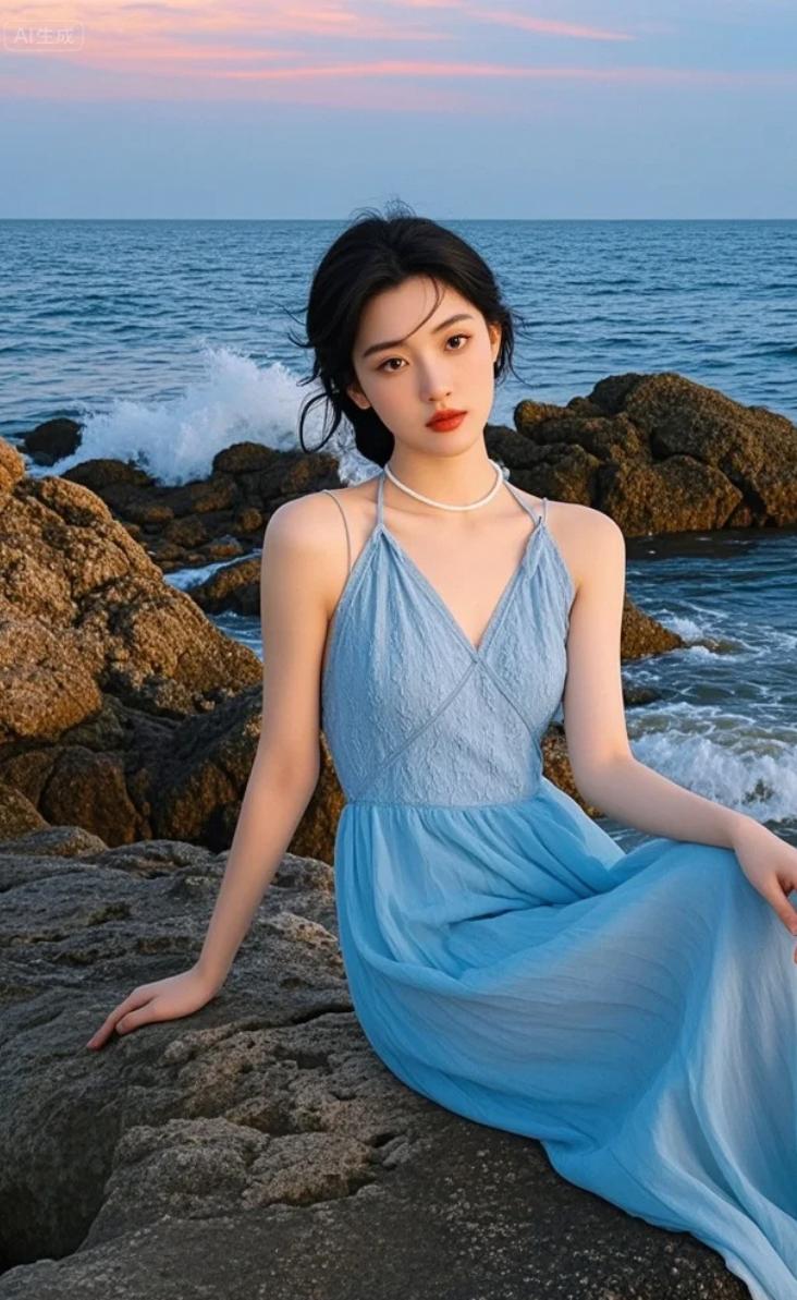 礁石为岸,晚霞作幕,她是海天间最动人的剪影。