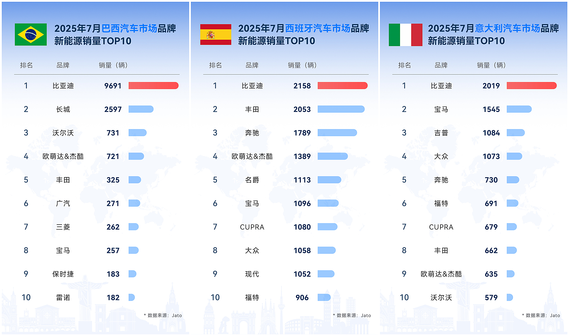 对于当下的自主汽车品牌来讲,走出国内市场这个“新手村”,并在海外市场拓销才是当务之急!尤其像是比亚迪这种销量大户,海外市场的重要性更是不言而喻! 从相关数据了解到,在今年7月,比亚迪品牌总销量达344296辆,其中海外销售80178辆,同比增长159.5%。在巴西、西班牙、意大利等国,比亚迪销量多处开花,一举拿下多个新能源销冠,成为海外市场和用户的信任之选。不仅如此,比亚迪还在多国荣获全品牌销冠、插混销冠、电动车销冠等荣誉。2025年《财富》世界500强榜单排名更是上升至91位,进而向世人展示自主车企的能力。 在这出色业绩的背后,是比亚迪全球化进程全面提速和本地化策略的持续深耕。包括在海外建厂,参与有助于品牌影响力提升的各类活动等等。截至目前,比亚迪新能源汽车的足迹已遍及全球112个国家和地区,但对于海外这个庞大的市场而言,这仍然只是冰山一角。未来,比亚迪将继续与一众自主汽车品牌一道,通过持续的技术创新和市场深耕作为基点,逐步改变全球汽车产业格局,让更多人有机会体验到国产车所带来的别样魅力!