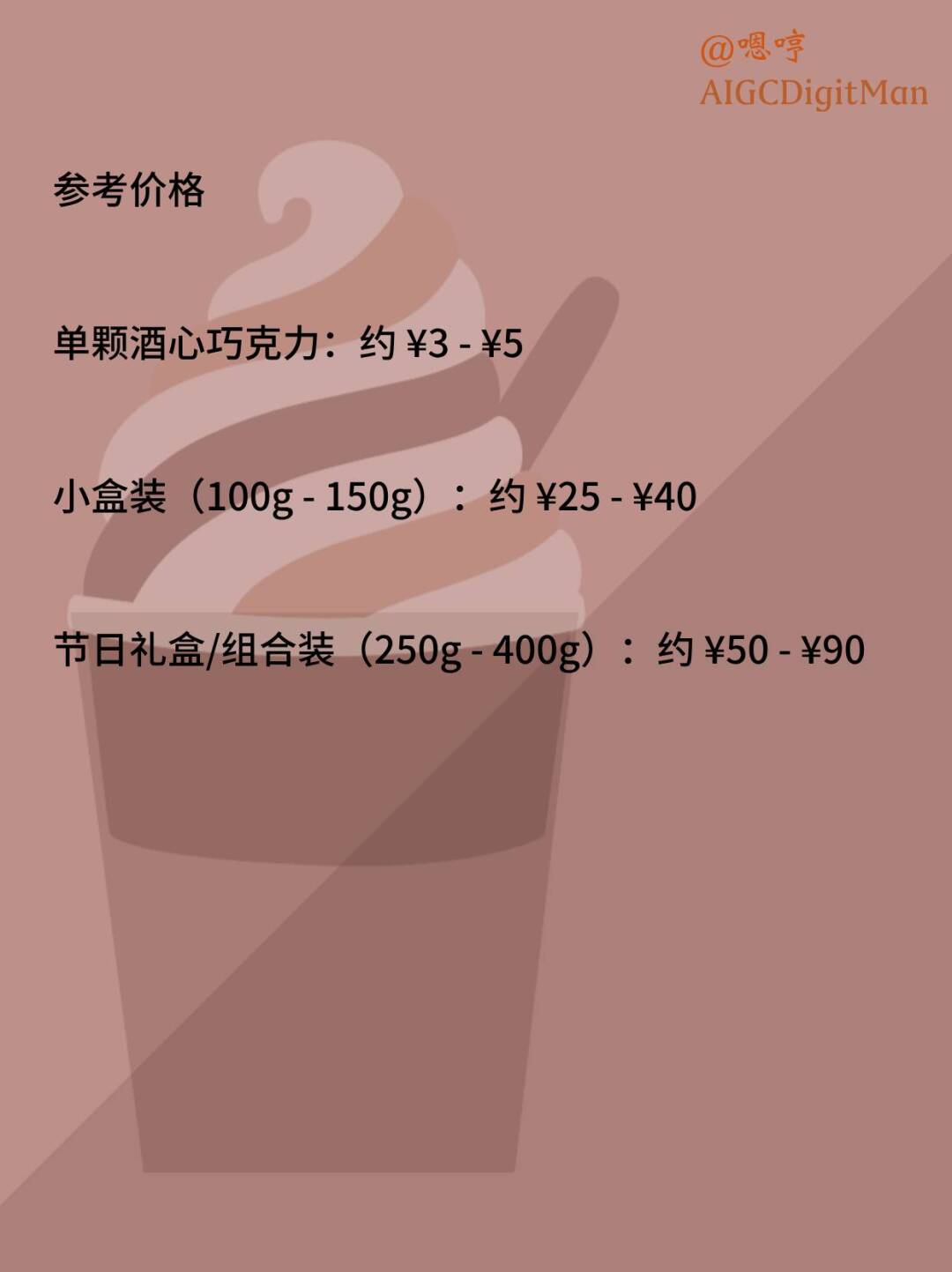 单颗酒心巧克力:约 ¥3 - ¥5