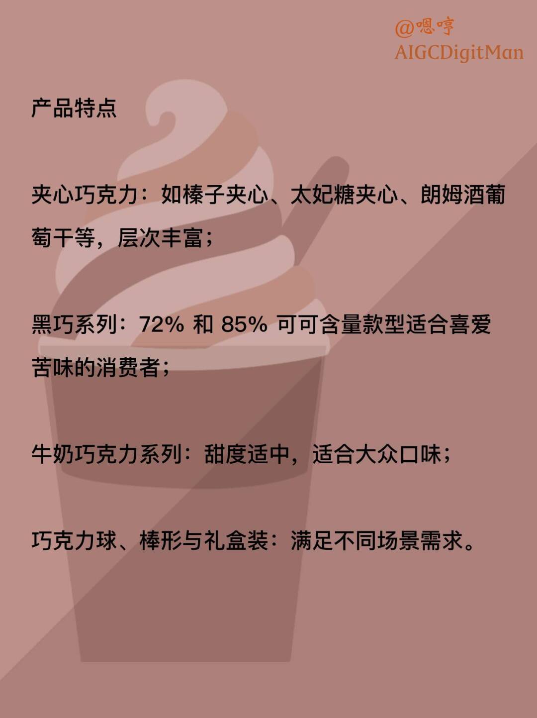 牛奶巧克力系列:甜度适中,适合大众口味;