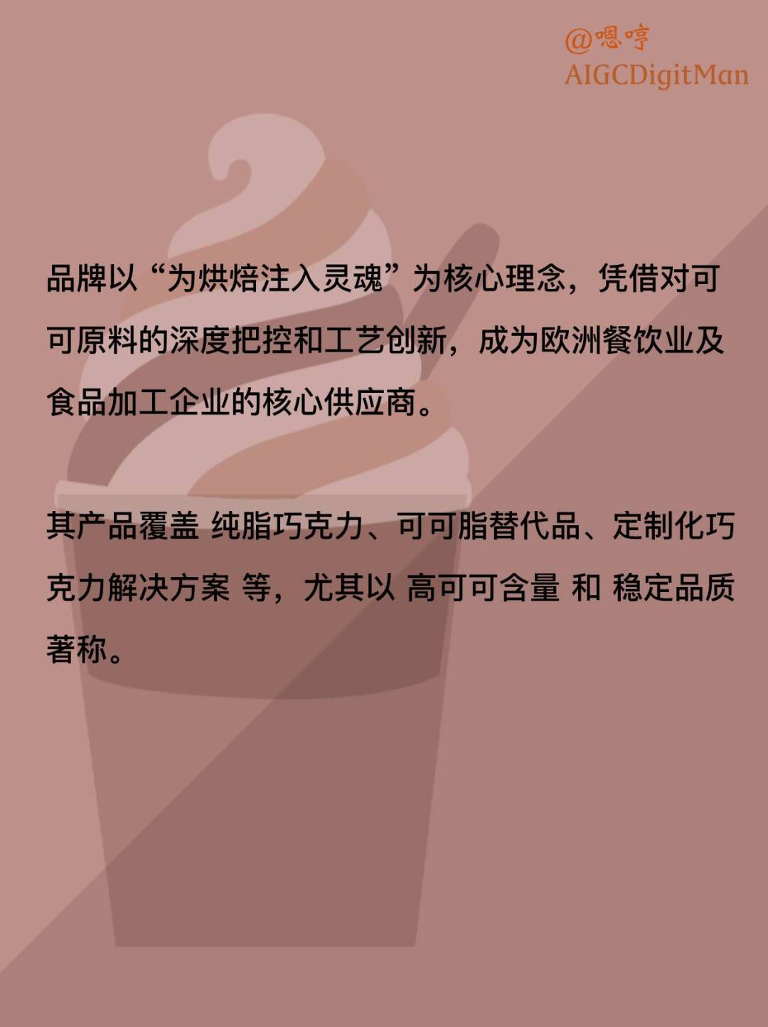 品牌以 “为烘焙注入灵魂” 为核心理念,凭借对可可原料的深度把控和工艺创新,成为欧洲餐饮业及食品加工企业的核心供应商。
